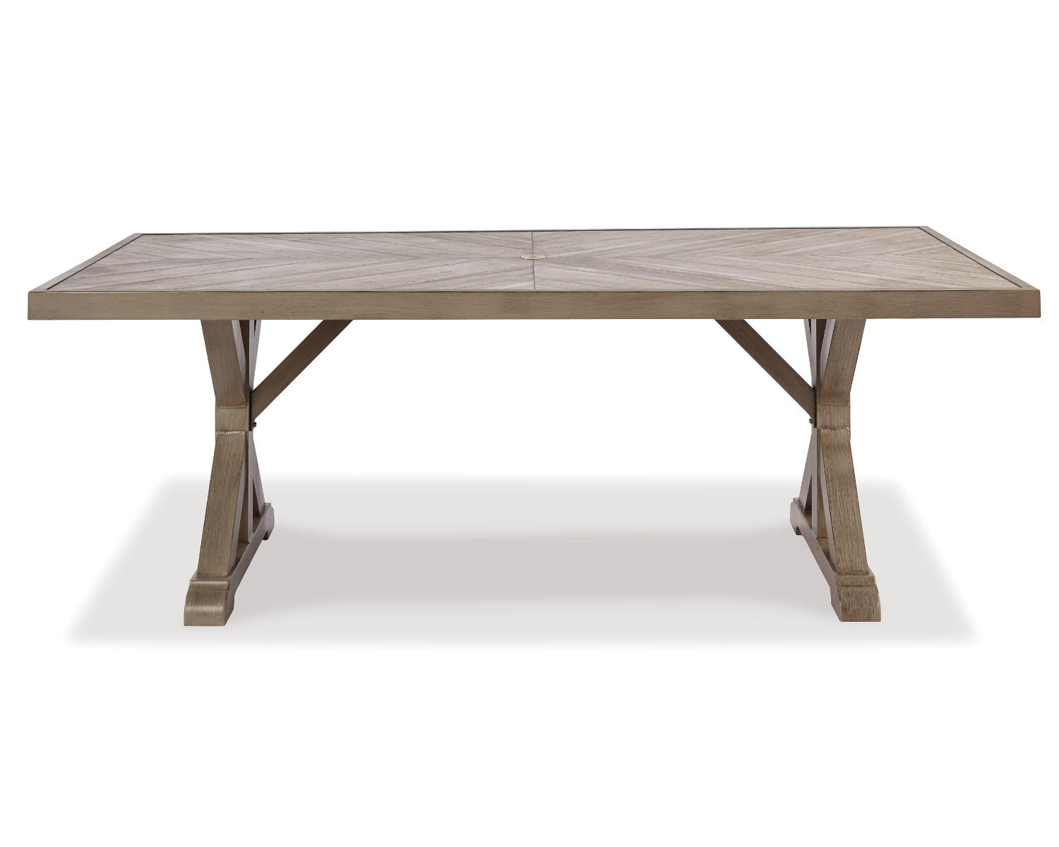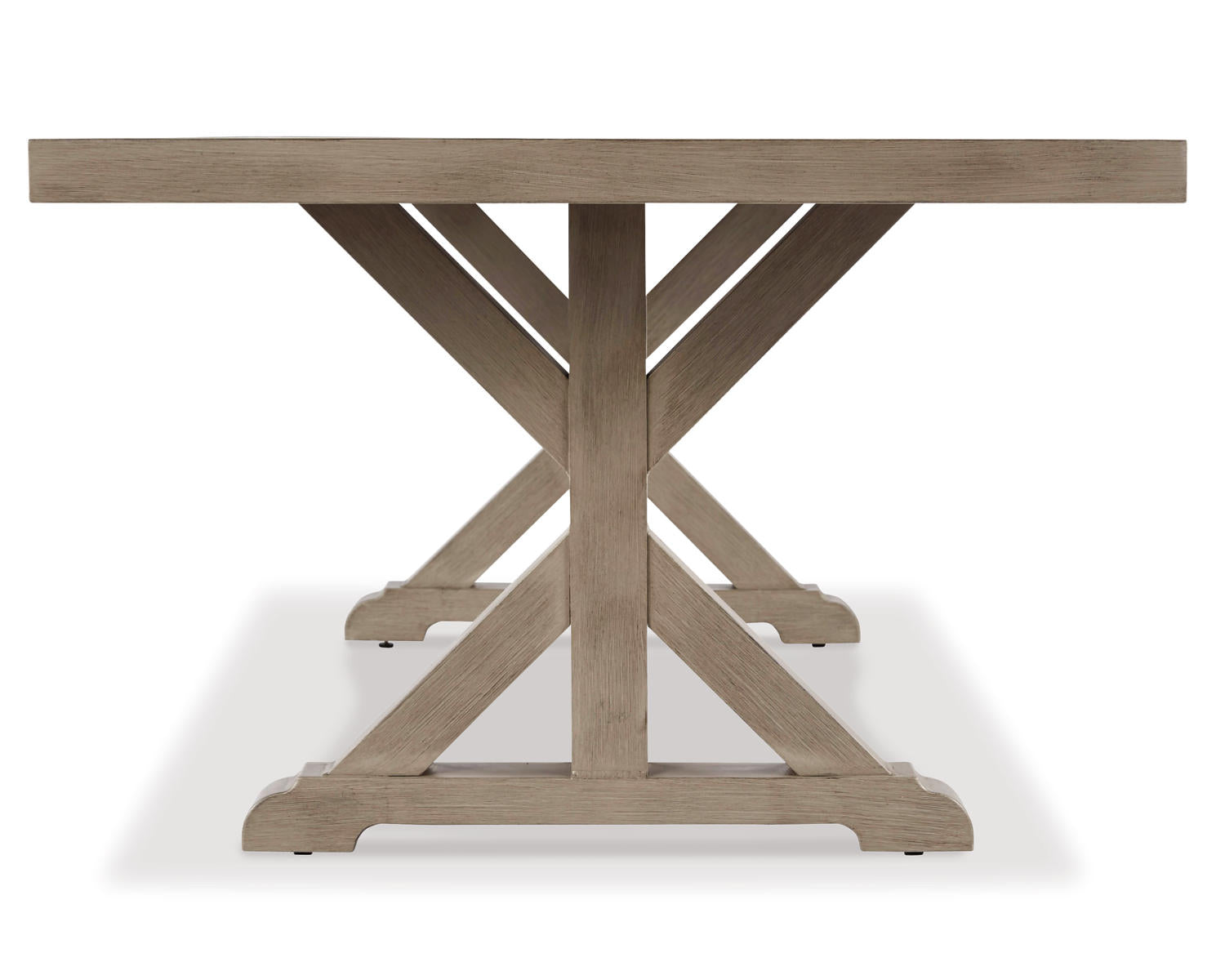 Sporting an easy-on-the-eyes look inspired by driftwood, this dining table elevates the art of alfresco living. Beautiful and durable enough for indoor and outdoor use, the high-style/low maintenance table charms with X-leg farmhouse styling, while its thick porcelain tabletop adds a natural complement.