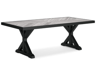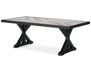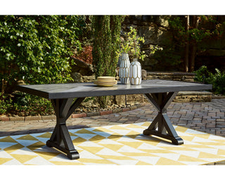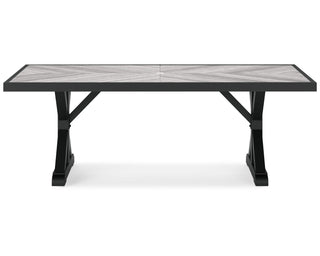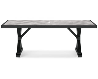 Sporting an easy-on-the-eyes elegance, this outdoor dining table set elevates the art of alfresco living. Beautiful and durable enough for indoor and outdoor use, this high-style/low-maintenance table charms with X-leg farmhouse styling. With a unique reverse diamond tile pattern, the thick porcelain tabletop provides unparalleled sophistication.