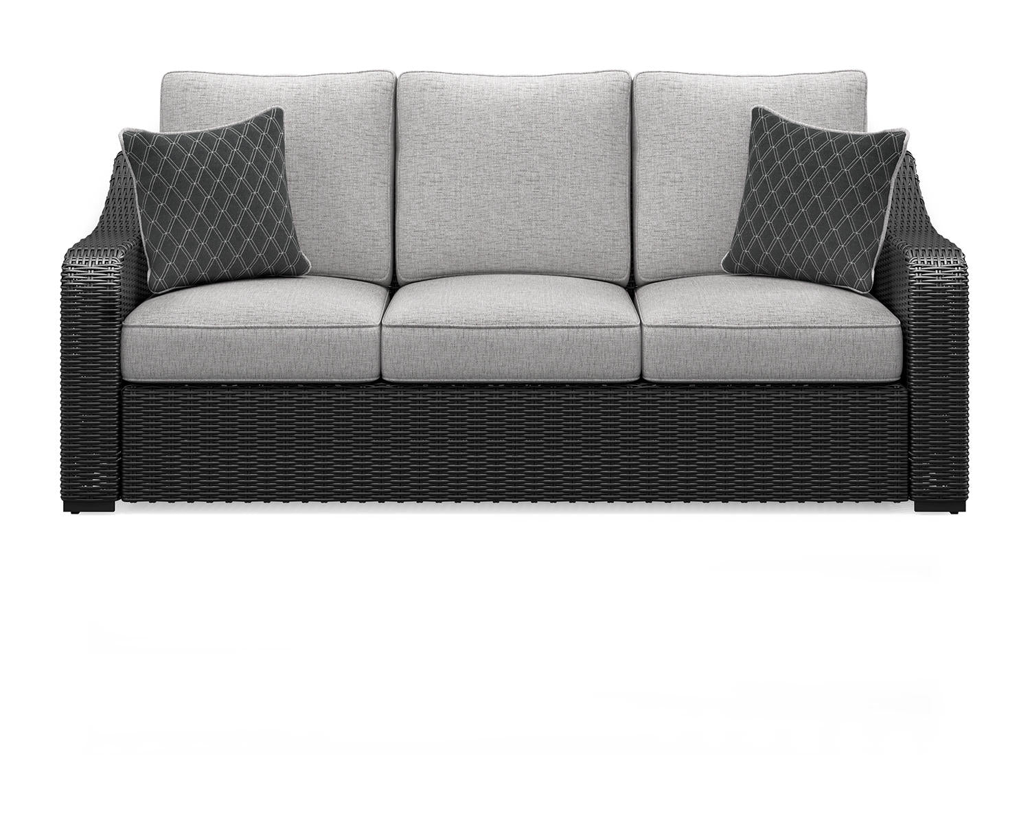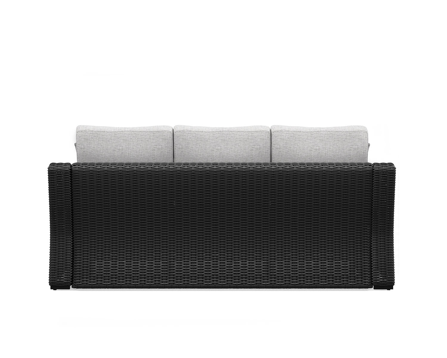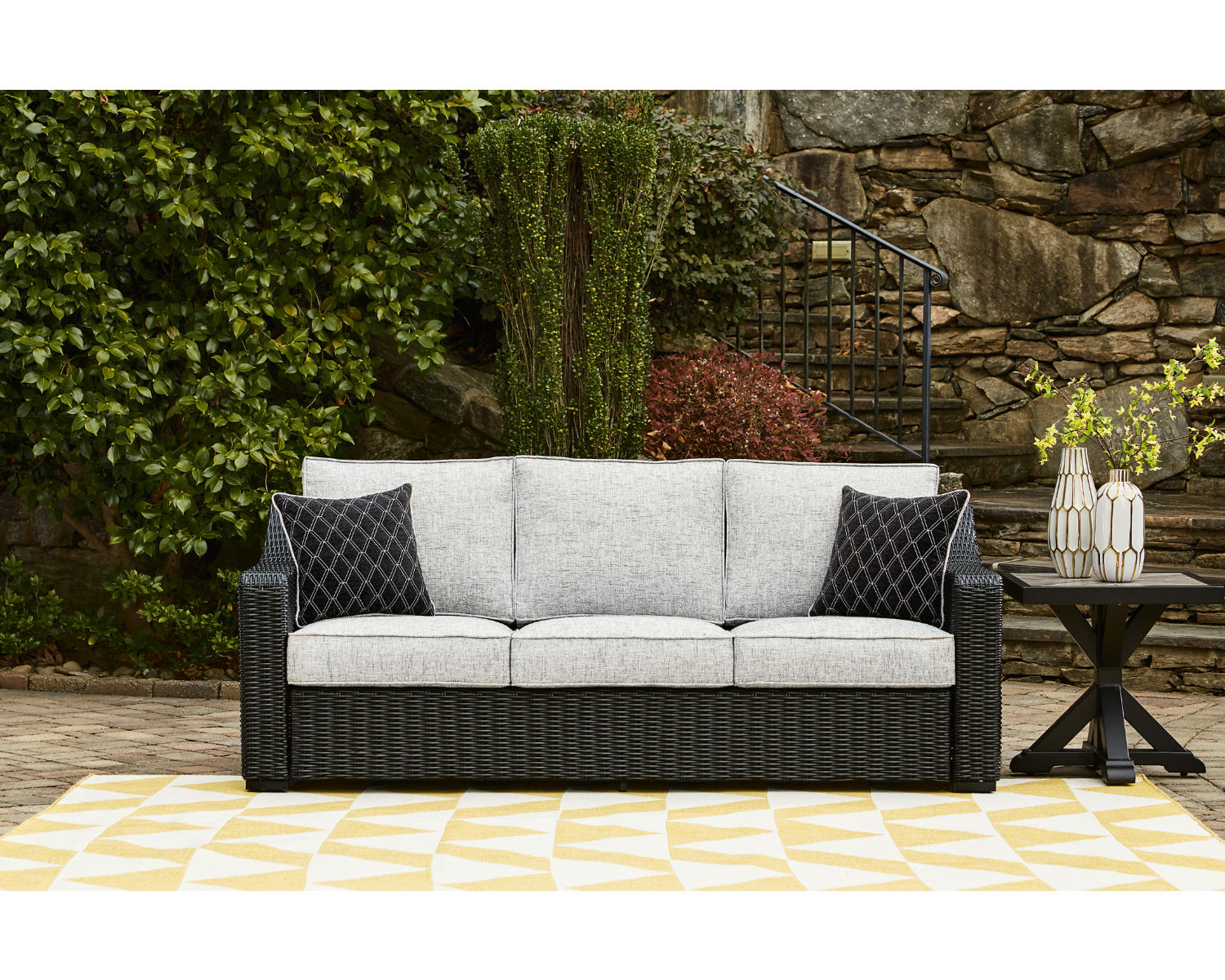Sporting an easy-on-the-eyes elegance, this sofa elevates the art of alfresco living. Beautiful and durable enough for indoor and outdoor use, this high-style/low-maintenance sofa entices with plush, removable cushions wrapped in Nuvella® fabric that’s a breeze to keep clean.