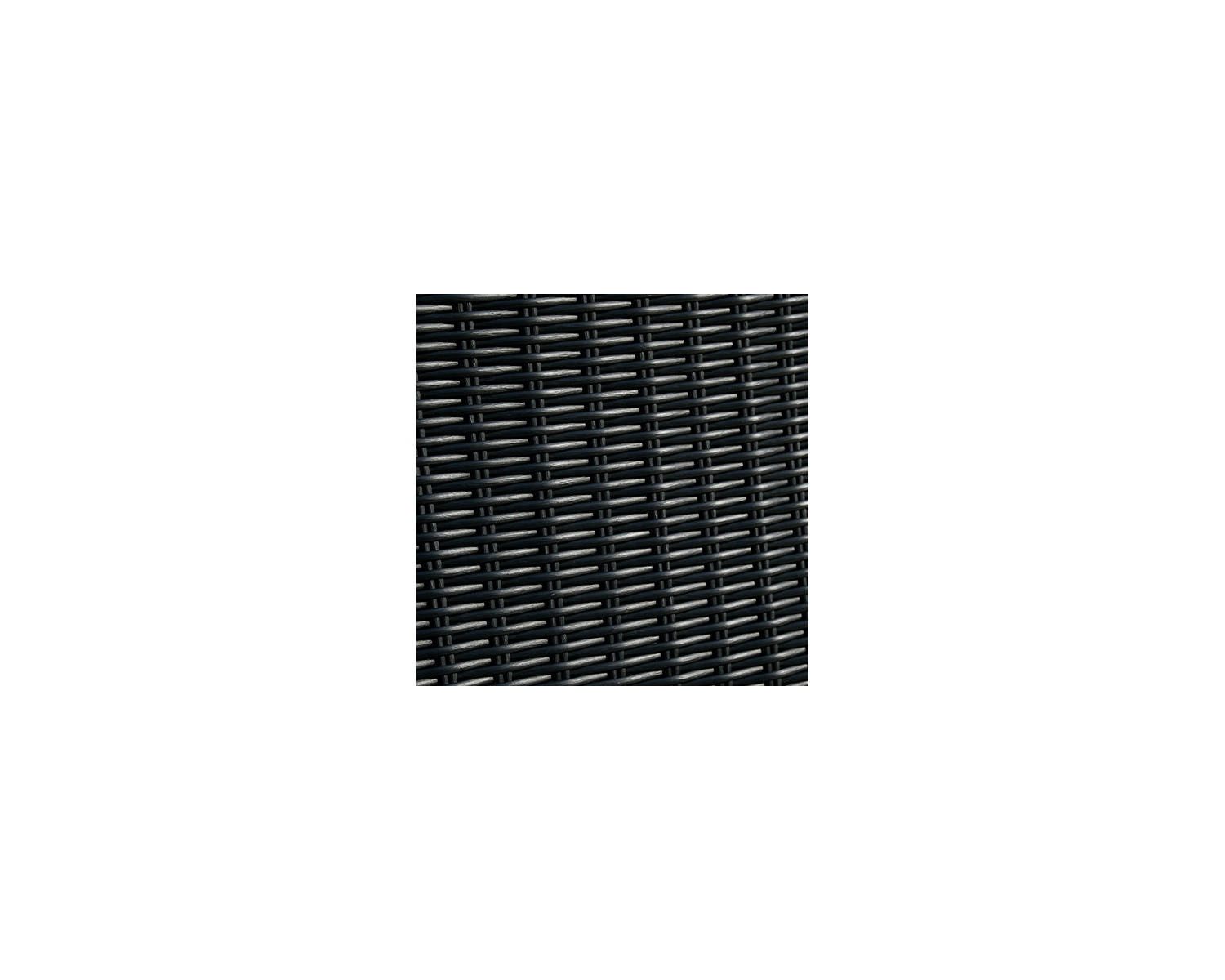Resin wicker on an aluminum frame. Stainless steel hardware. Porcelain top umbrella table. Umbrella hole. Nuvella high performance fabrics. P792-835 has Nuvella high performance light gray fabric. Includes two throw pillows.