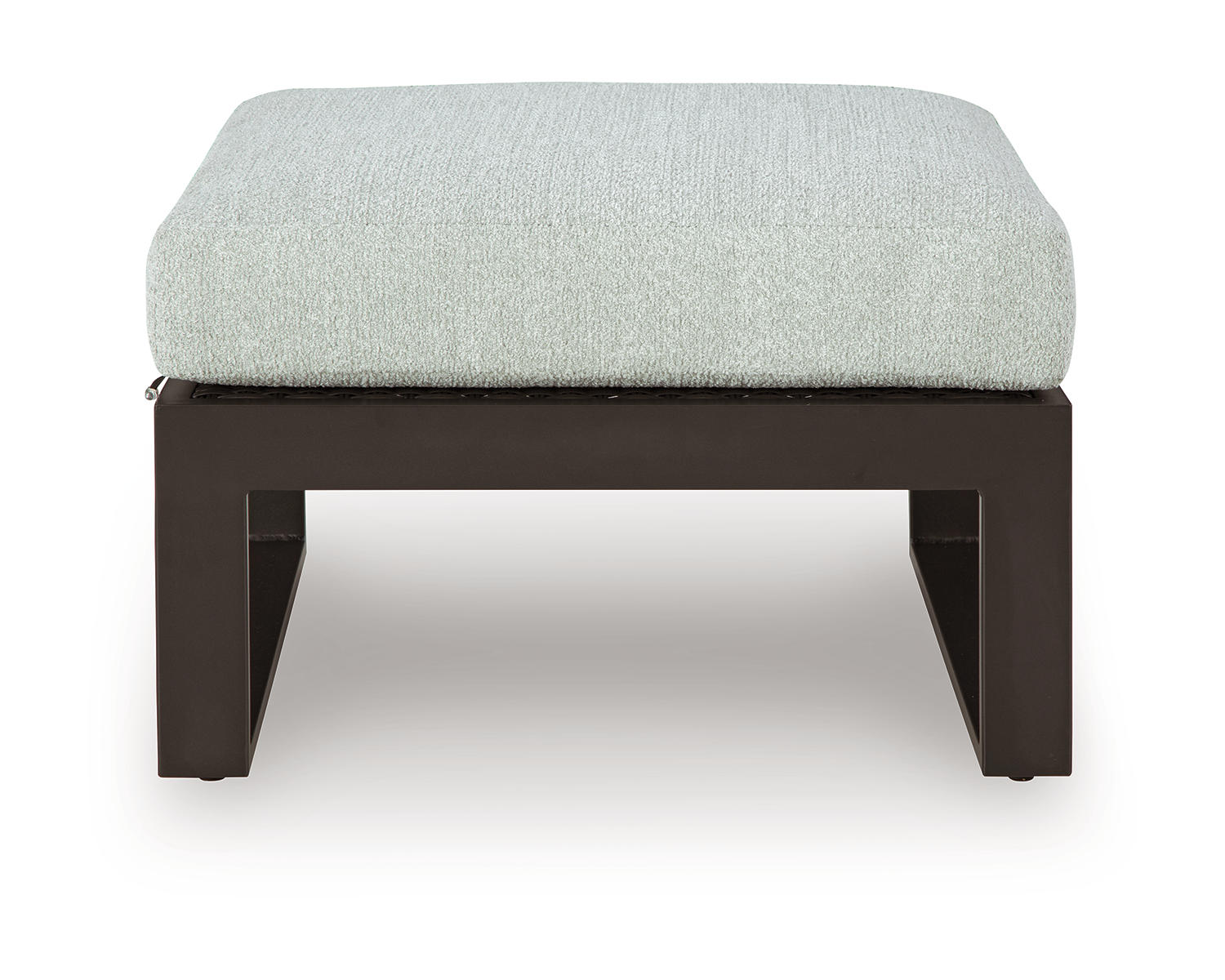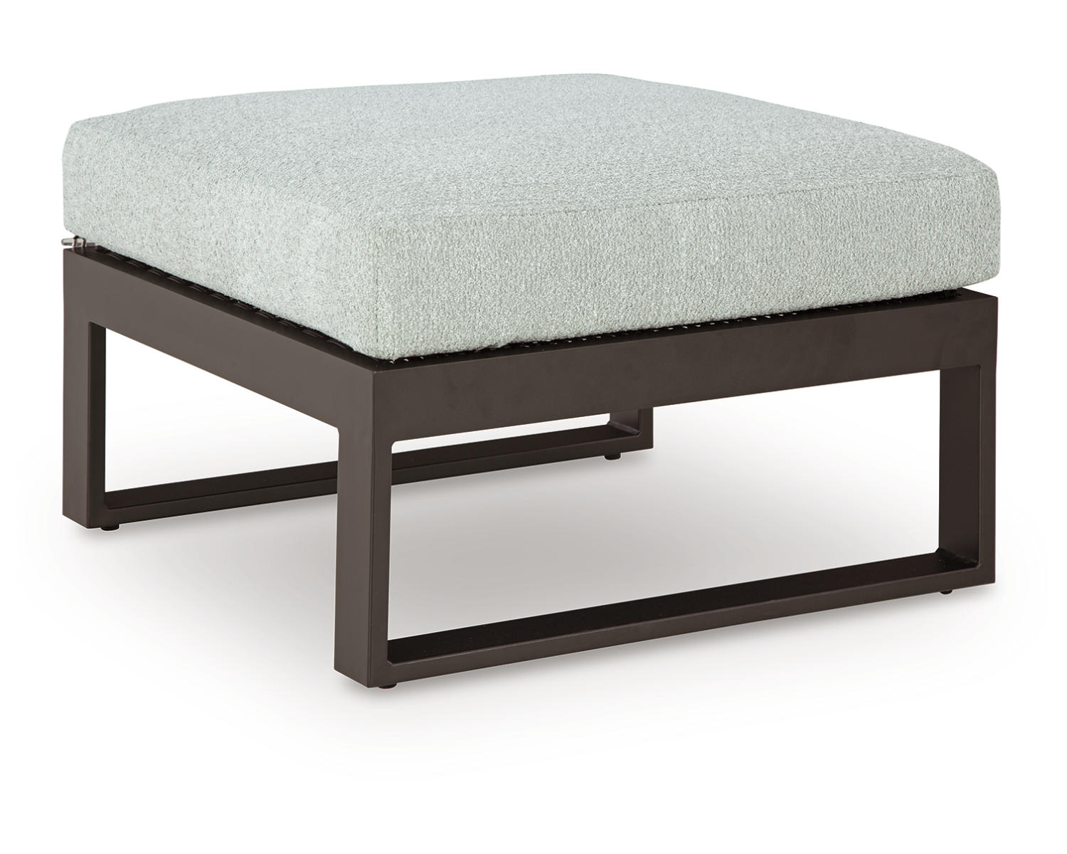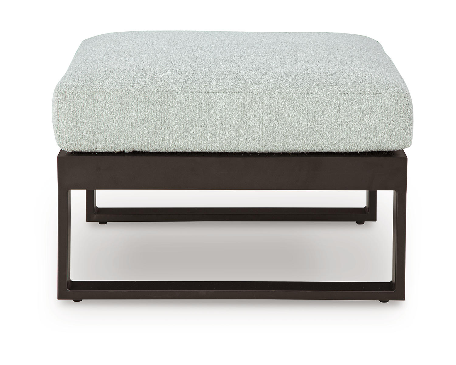 Sleek, contemporary style meets outdoor living in this ottoman. Its clean-lined black aluminum frame expertly balances good looks and longevity. And the enhanced UV resistance of Nuvella+™ fabric keeps the cushion light and bright, weathering the seasons beautifully. With this ottoman on the back porch or poolside, you can confidently curate a luxe vibe.