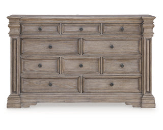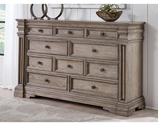 Discover something exceptional with this dresser. Its impressive silhouette offers a casual traditional aesthetic, embodied by classic-inspired columns and a relaxed grayish brown finish. Inset framed drawers of various sizes are casually cool and packed with ample storage possibilities.