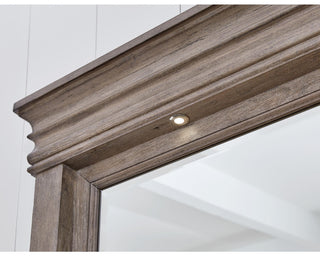 Discover something exceptional in this dresser with mirror. Its impressive silhouette offers a casual traditional aesthetic, embodied by classic-inspired profiles and a relaxed grayish brown finish. Inset framed drawers of various sizes are casually cool and packed with ample storage possibilities. The mirror frame features mini LED lights that handsomely reflect your sense of informal yet timeless style.