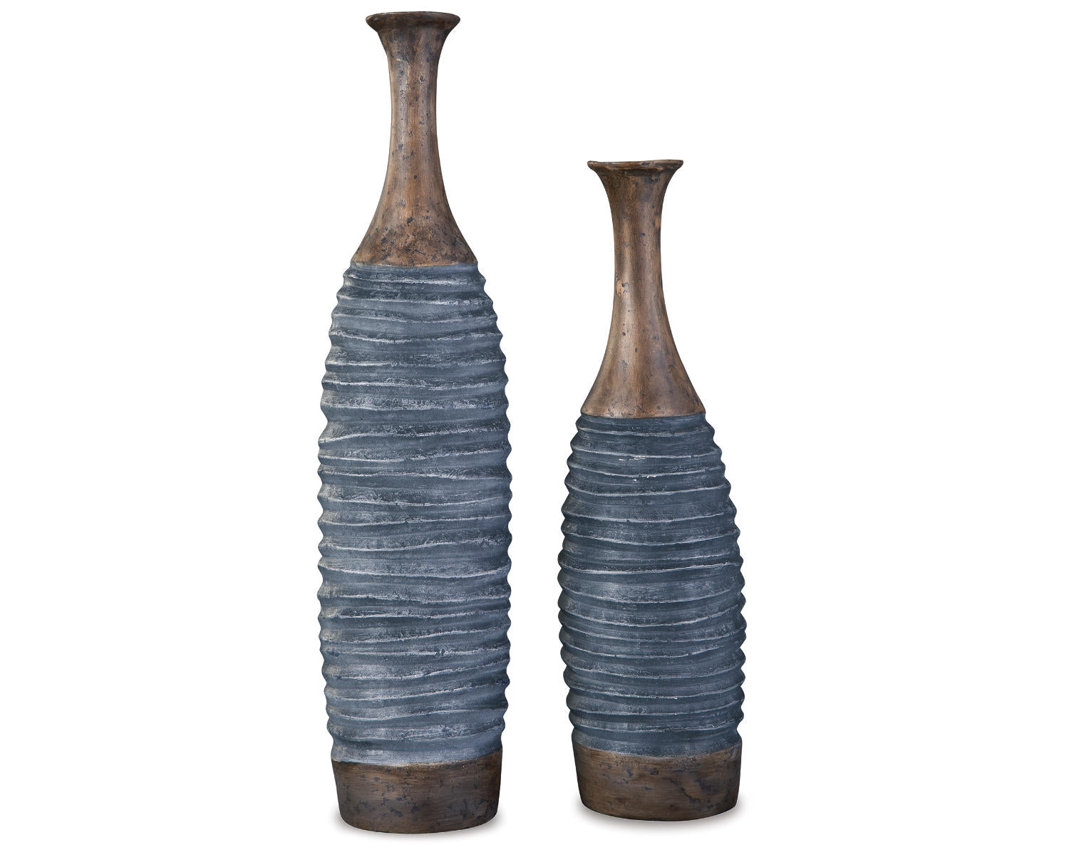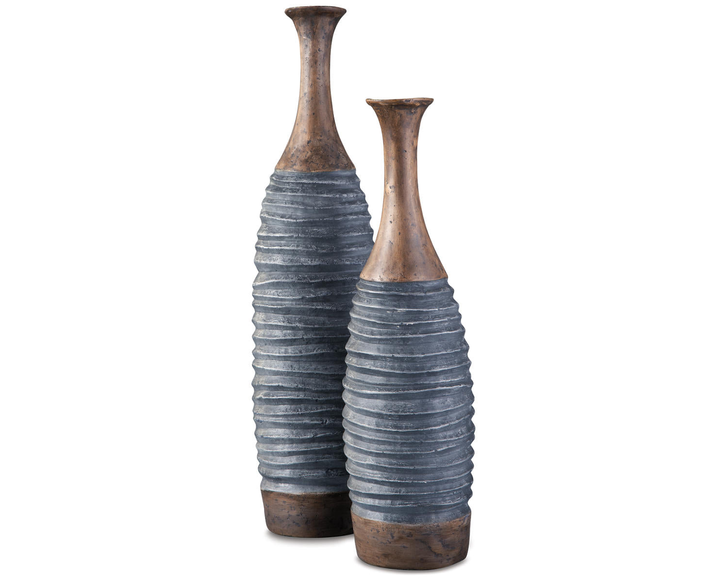 Add texture and interest to your space with this set of two vases. Made of a composite paper material, these sculptural objects make it easy to cut and paste design brilliance into your home decor.