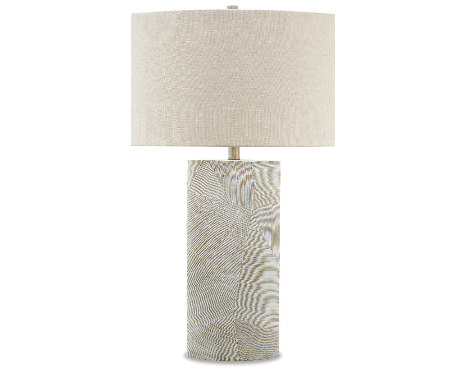 The rustic natural beauty of this table lamp makes it perfect for illuminating any room. Its brown and ivory resin base is complemented with a straight-side oval hardback shade. Low profile yet elegant, this lamp makes a gorgeous accent for contemporary spaces.