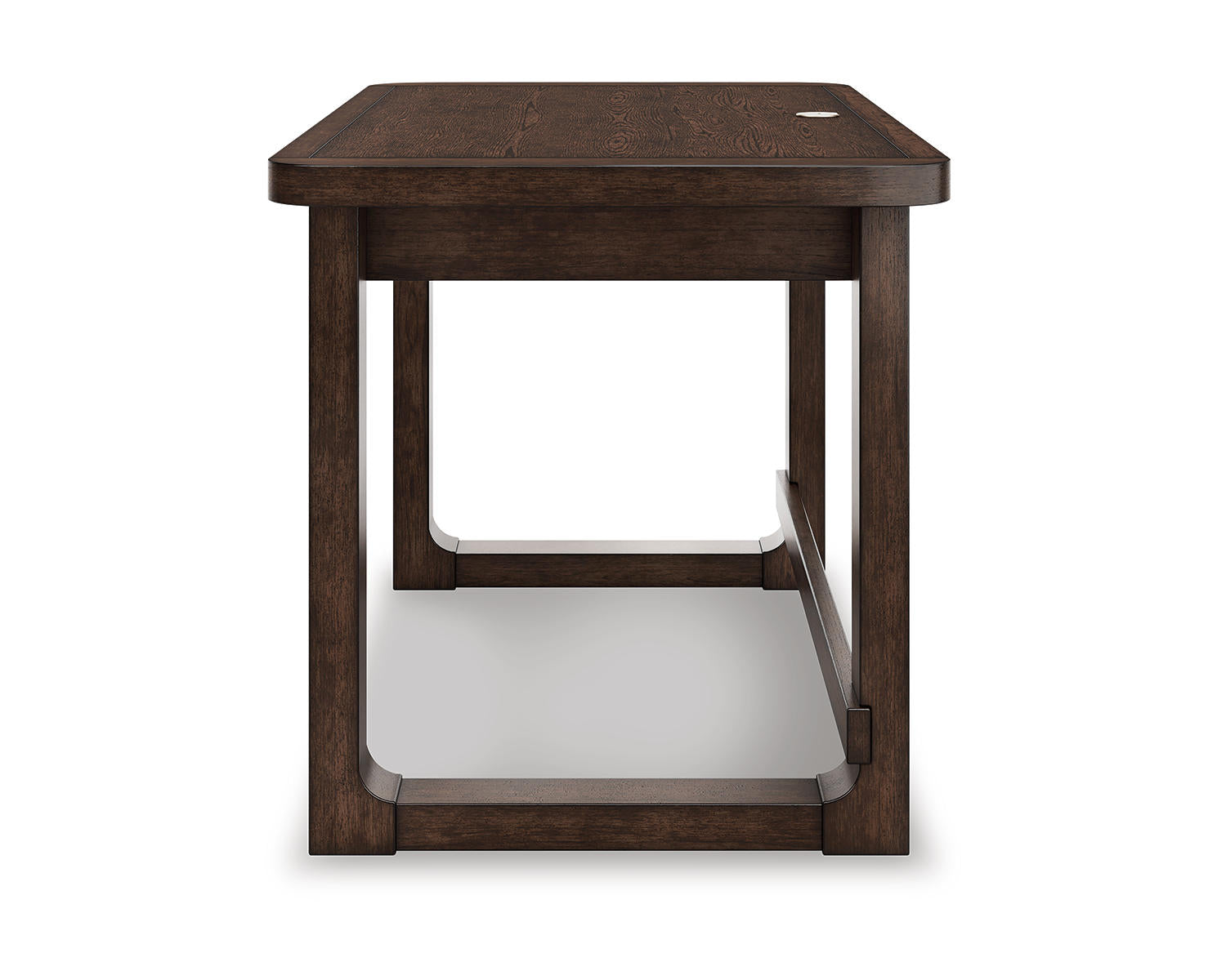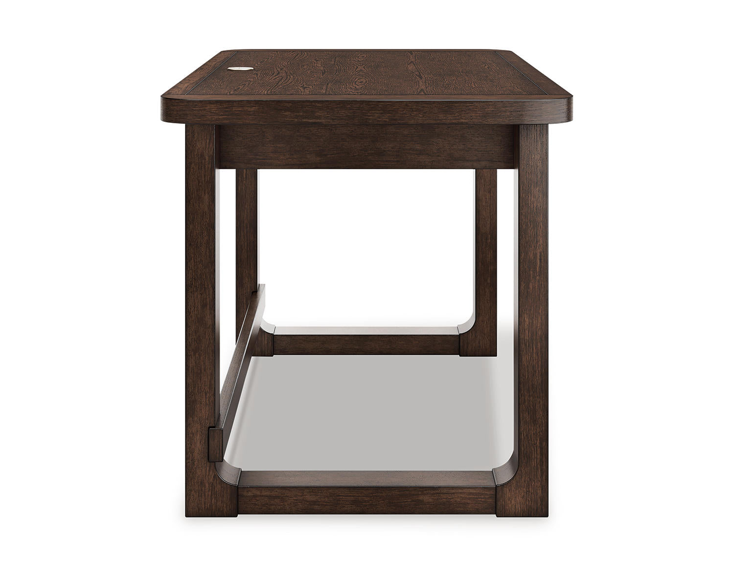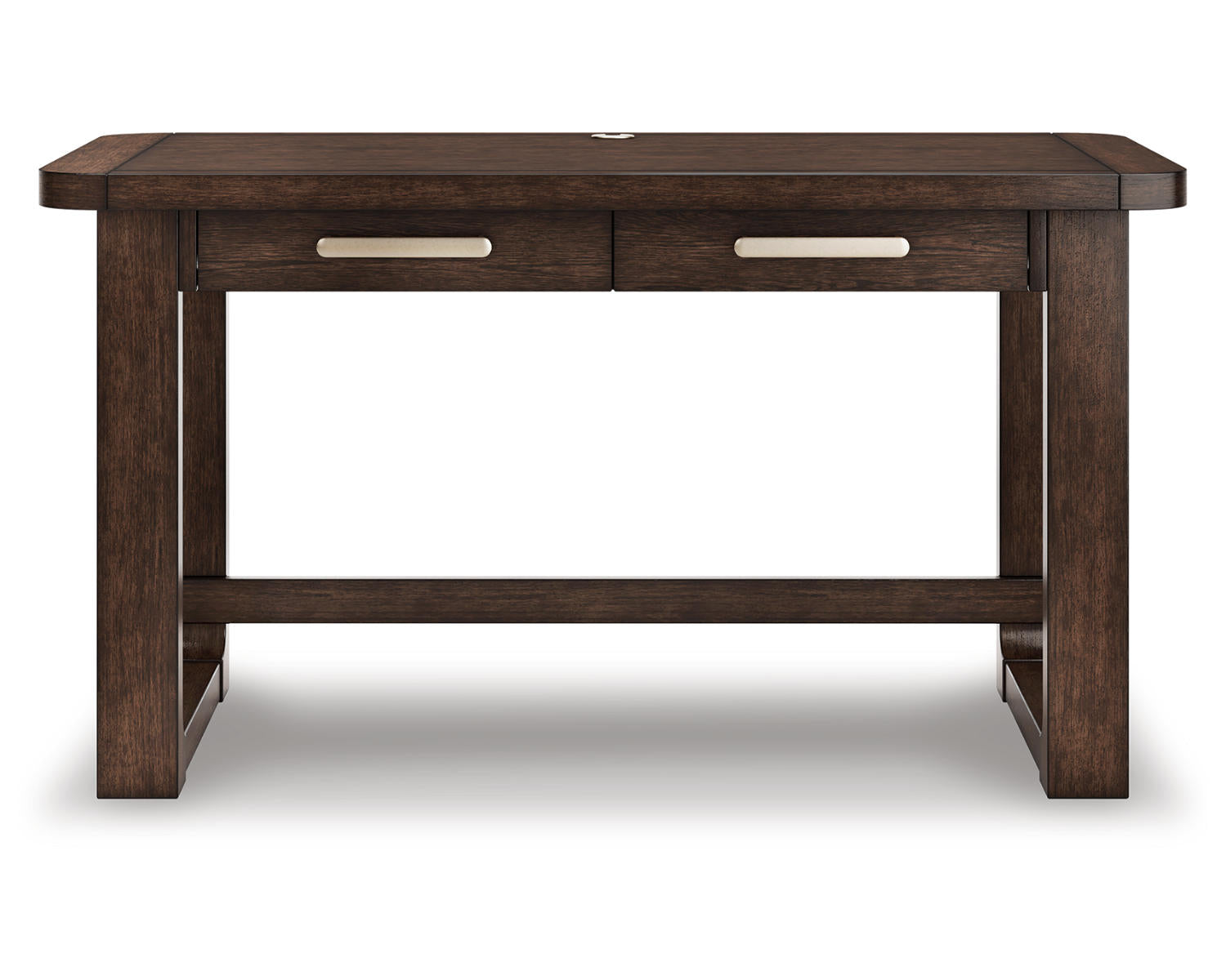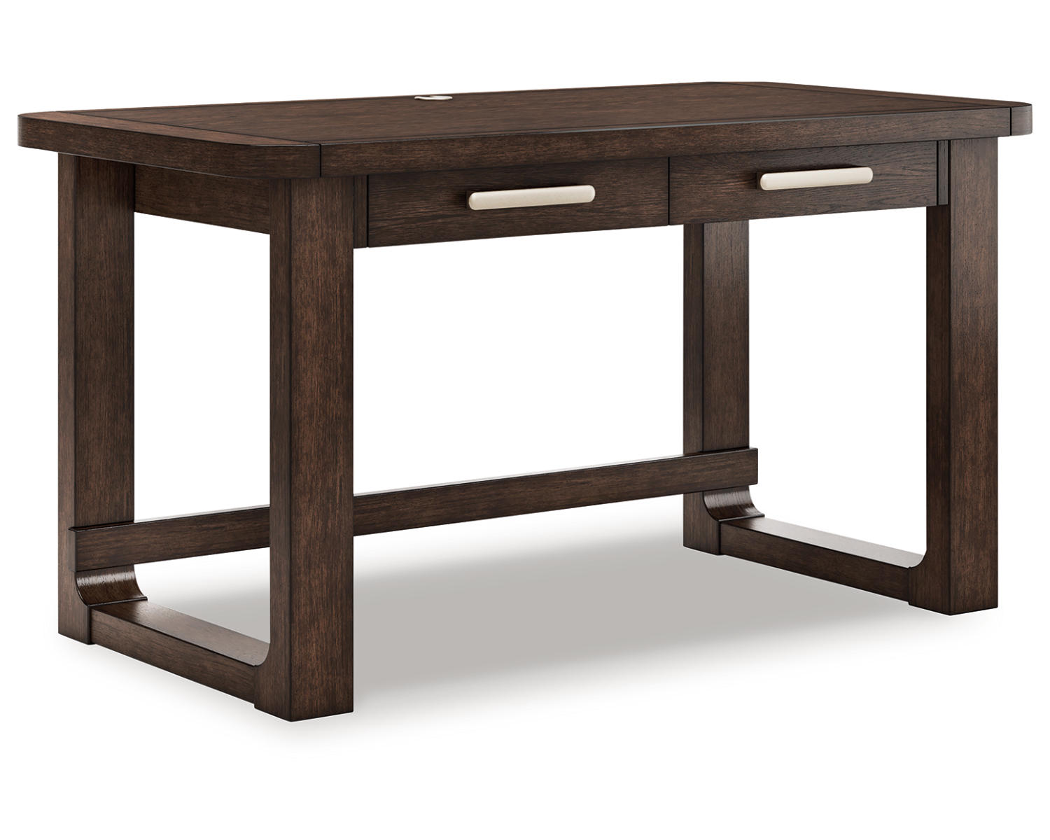Classic meets contemporary in this home office desk. Its rich, dark wood tone and rounded corners suit today’s trends while balancing a timeless appeal. And with two storage drawers for work and study essentials, this desk gives your office a dose of both form and function.