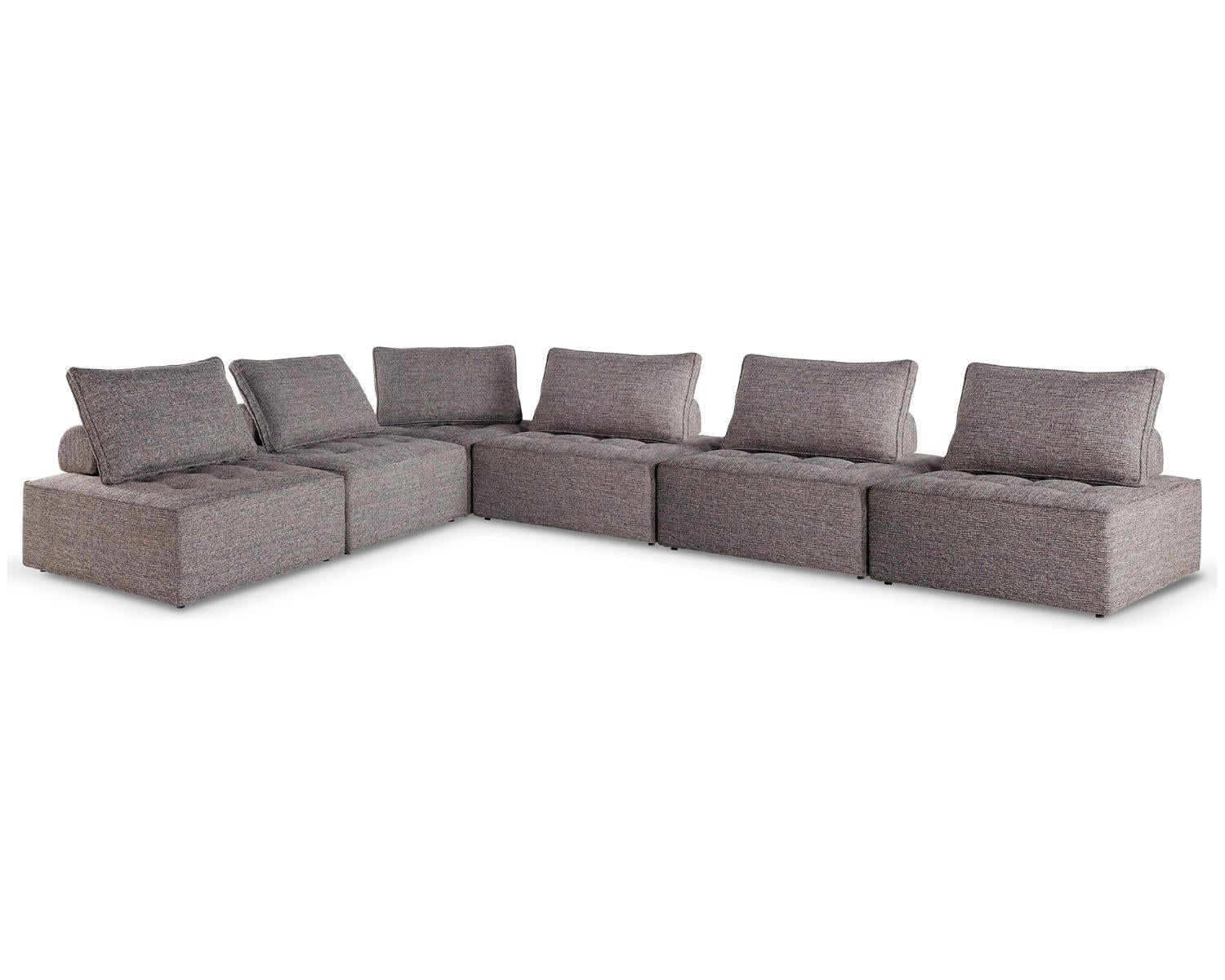 This modular seating set seeks to bring serenity to your outdoor seating area. Channeling Japandi and casual contemporary aesthetics, its low profile encourages laid-back living without sacrificing sophistication. The included back cushions complete moments of tranquility with superior comfort. And with the modular design of each piece, you can effortlessly rearrange the pieces to suit your needs.