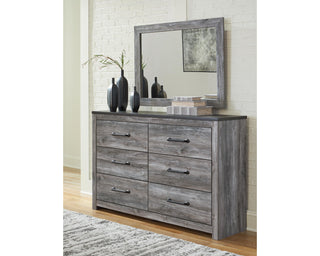 Alluring smoky gray hues create an ambiance that just feels right. This 6-drawer dresser and mirror set has a charming wood-like appeal enriched by a two-tone, textured look. Light neutral shades contrasted by a dark charcoal finish bring a refined yet relaxed feel to contemporary decor and a sense of serenity to your space.