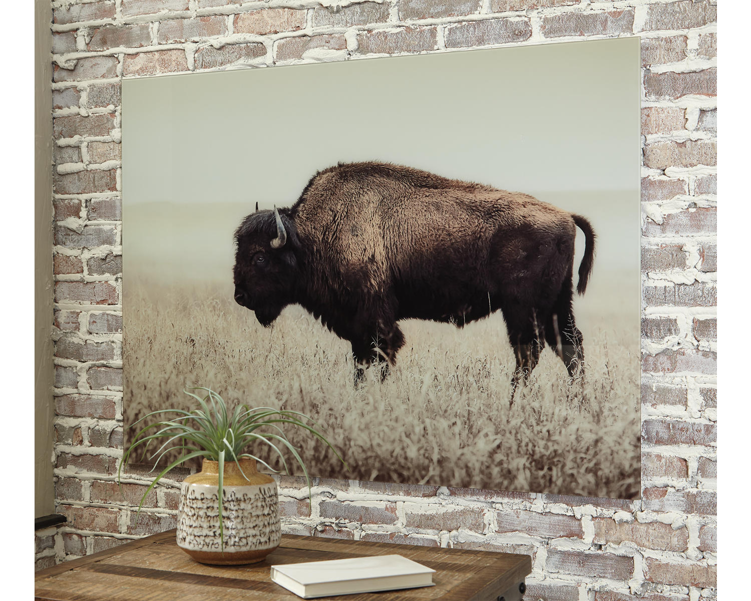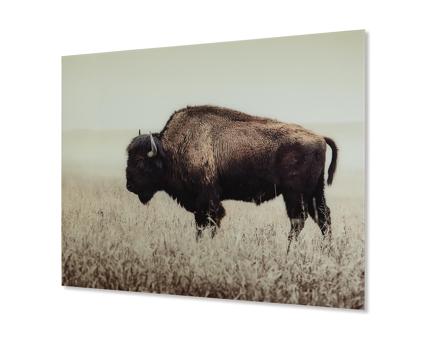 Add a touch of rustic refinement to your decor with this unique sepia wall art. Glass reproduction of a lone bison calls to mind tintype photos of the Old West, making for a retro look loaded with charm.