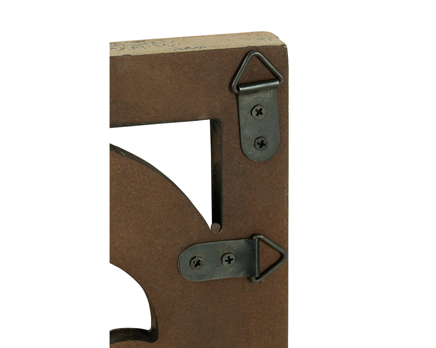 Antique gold finished wood wall sculpture. Scrollwork design. D-ring bracket for hanging. Vertical and horizontal hanging. Due to the finishing process of this product, some variations may occur.