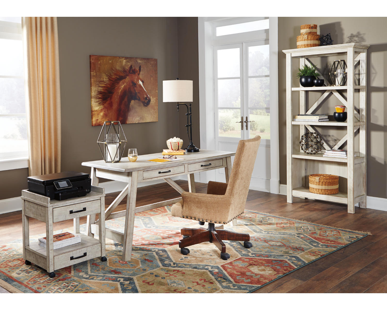 Looking for a fresh approach to modern farmhouse living? This home office desk with matching printer stand and bookcase works on so many levels. Two smooth-gliding drawers with dovetail construction reflect high quality that never goes out of fashion. Whitewash finish is a mastery in subtle sophistication.