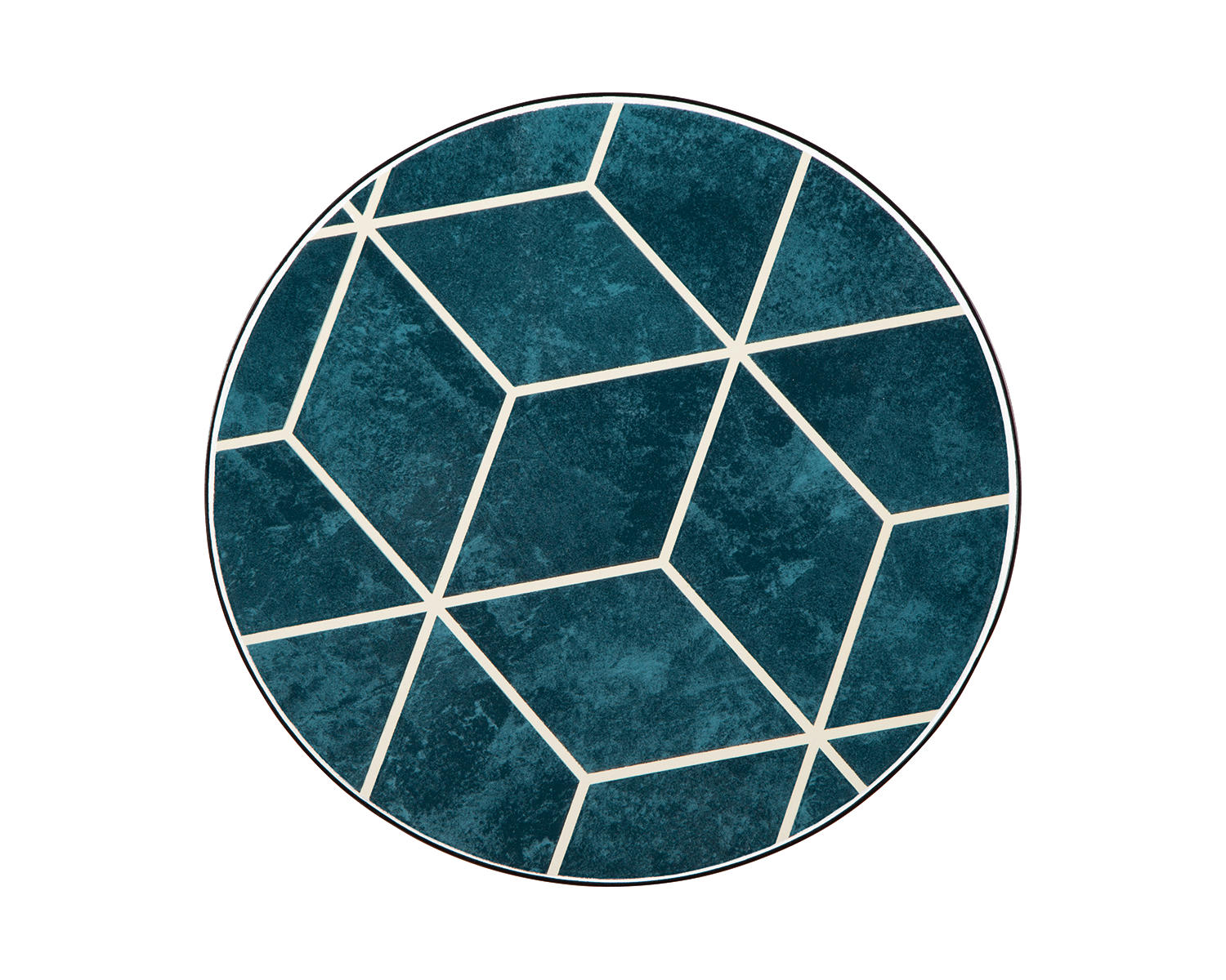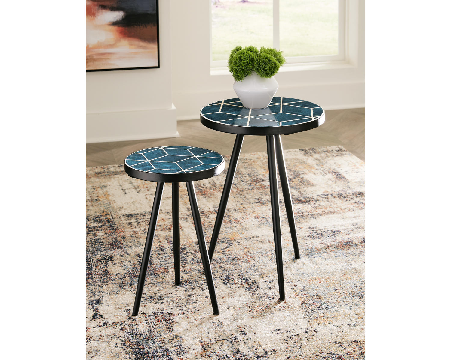 This accent table set enamors all with its striking style. The mesmerizing diamond pattern top graces your space with a splash of geometric design and a dashing two-tone teal glaze. Dazzle guests by making it a resting place for cocktails and hors d'oeuvres at parties—or keep this piece all to yourself as a bedside table for books and other baubles.
