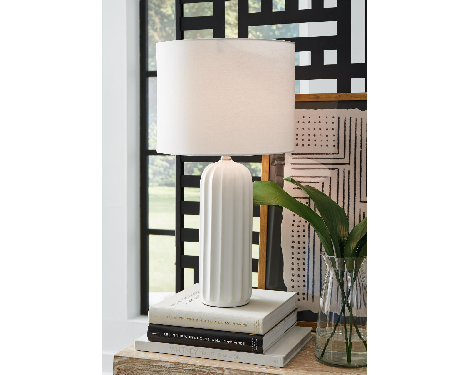 Set the scene for bedtime reads and living room lounging with this table lamp. Simple and unassuming, the all-white look keeps contemporary style top of mind without overwhelming your decor with detail. It’s chic, crisp and completes your daily routines with ease.
