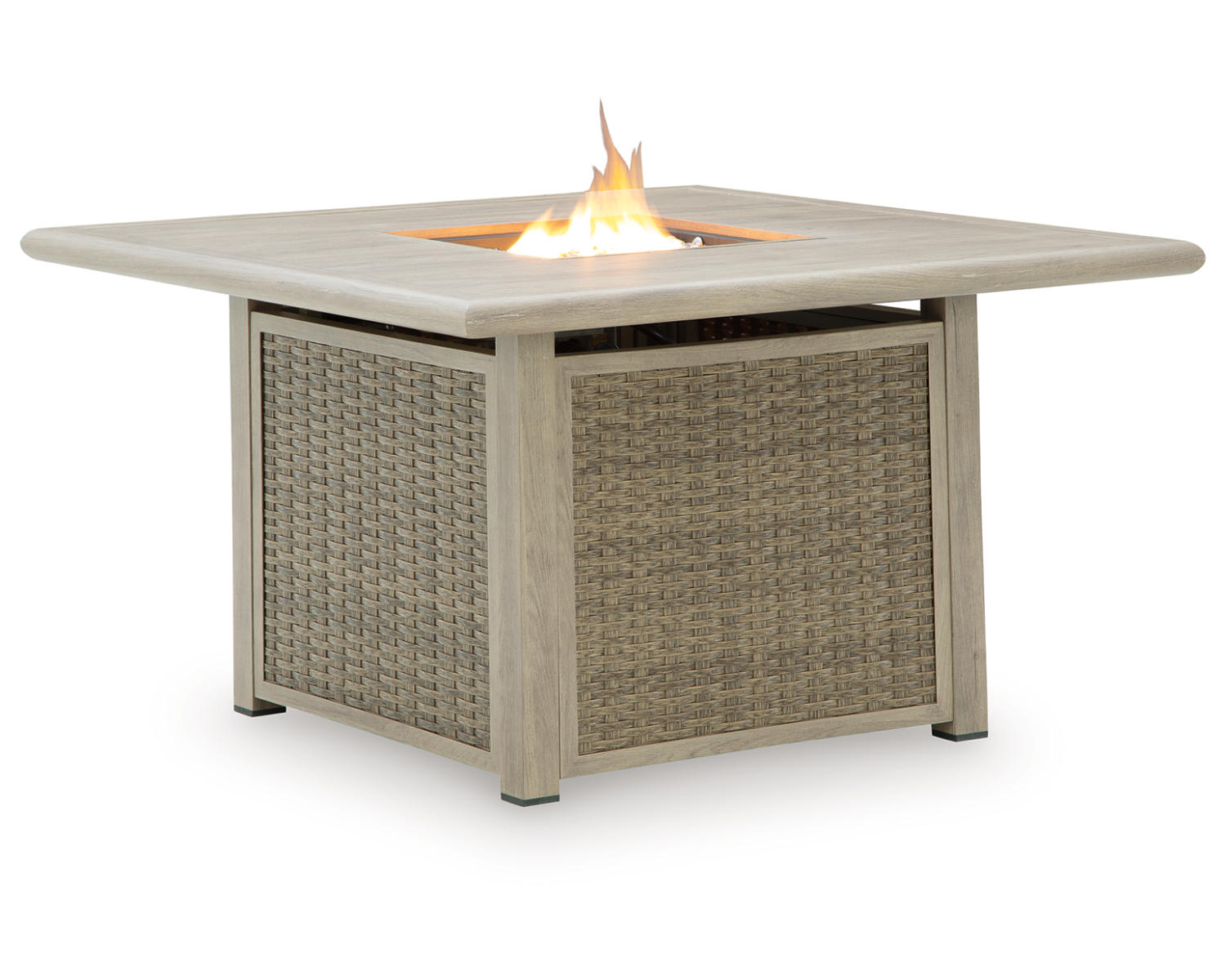 The naturally beautiful look of wood. The convenience of a crackling fire. And did we mention durability? This fire pit table is crafted with elevated style and everyday function in mind. With sturdy aluminum construction and a protective cover, it withstands the weather while making a chic statement on your deck or patio. A simple press of the button quickly ignites the flame, so you can get to enjoying warm summer evenings or cozy winter nights.