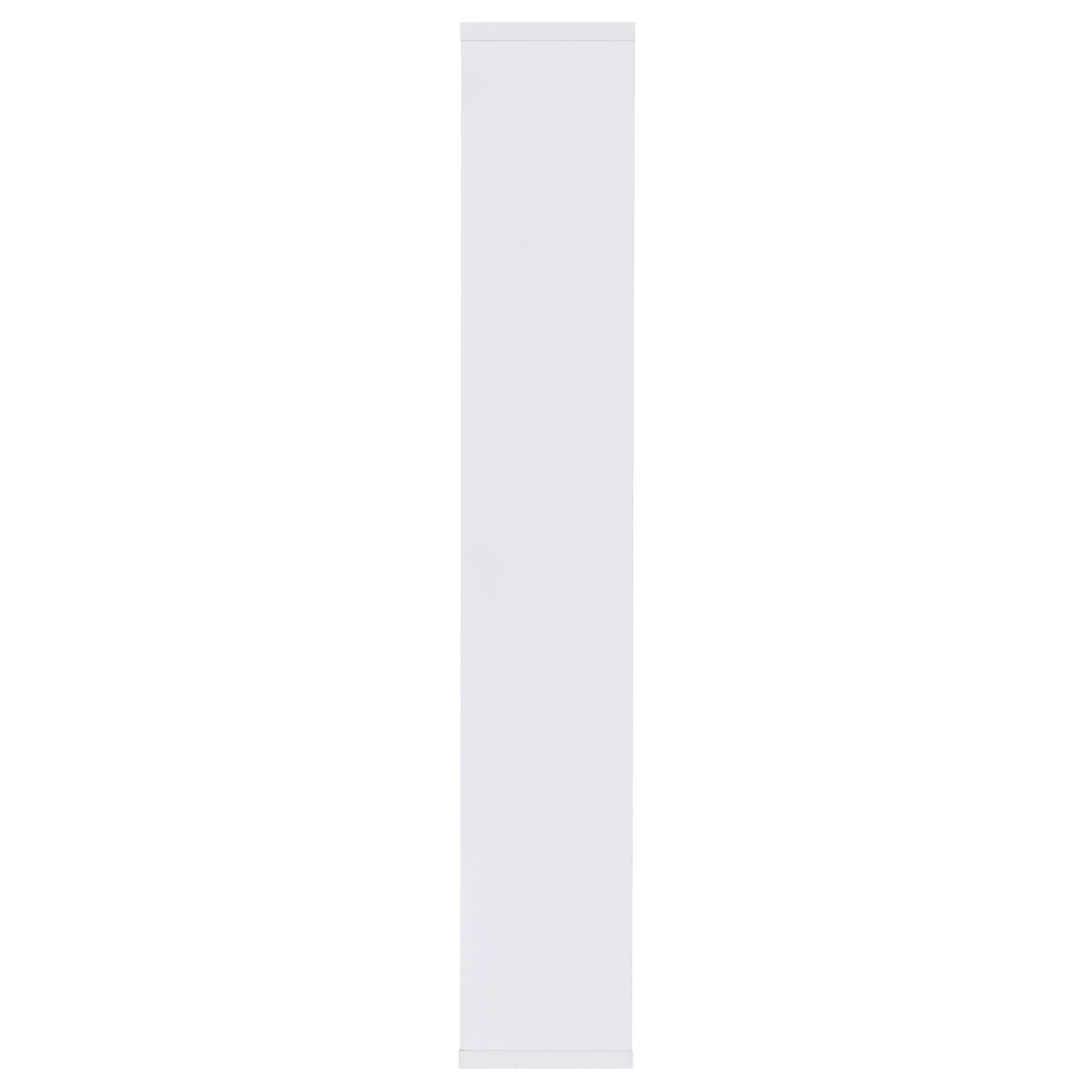 Put your most cherished memories on proud display. This bold bookcase features ten shelves of various sizes to show off your favorite keepsakes. With expert craftsmanship and high-quality materials, it provides safe, sturdy storage. Its cool, contemporary silhouette adds artsy appeal to a room with its striking, geometric shapes. This bookcase is available in white, cappuccino, or weathered grey for a variety of options to fit any decor.