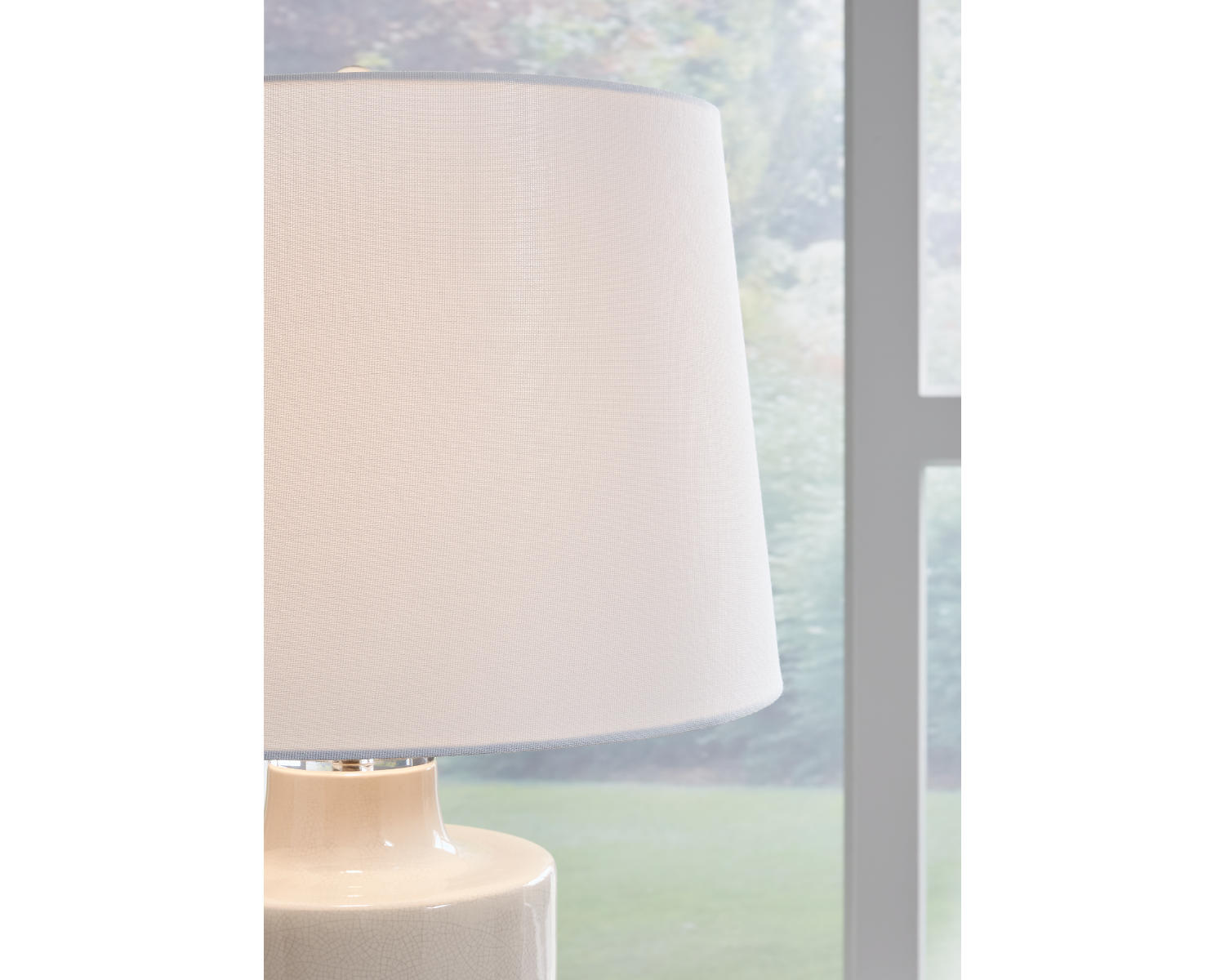 Serve up a simply stunning take on traditional style. The crackled glazed ceramic base of this table lamp is smooth to the touch yet full of visual texture. No need to sacrifice beauty for functionality here—it captivates while also providing light for reading or relaxation time.