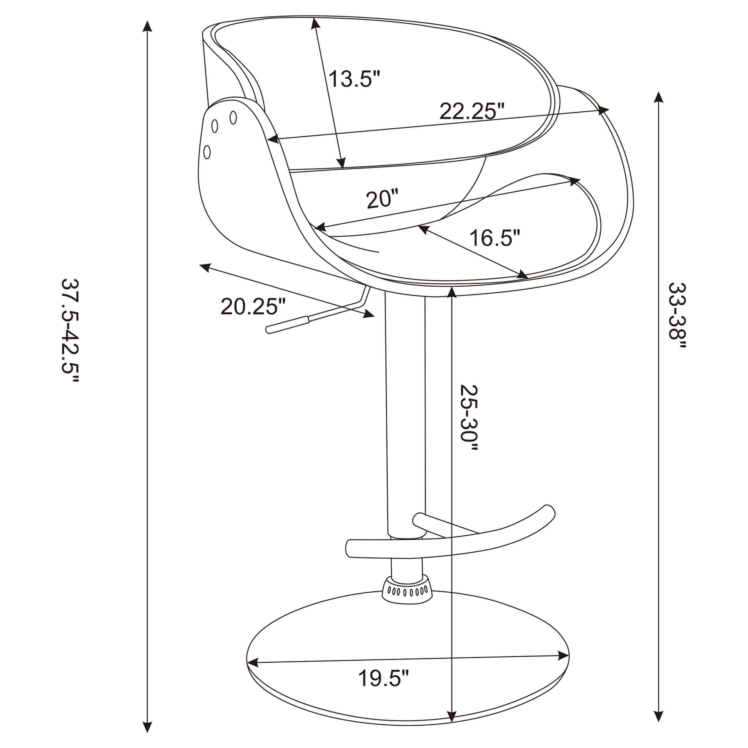 Perfect for a home bar or kitchen island, this barstool is conveniently height adjustable to fit with any space. Beautifully designed, it features a simple, sleek support that flares elegantly into a sturdy, round base. Its seat boasts a cool, curved silhouette with a pleasingly modern feel. The shiny finish of its base creates an appealing contrast to the subdued shades of its seat. With comfortable back and foot rests, it offers maximum support and durability.