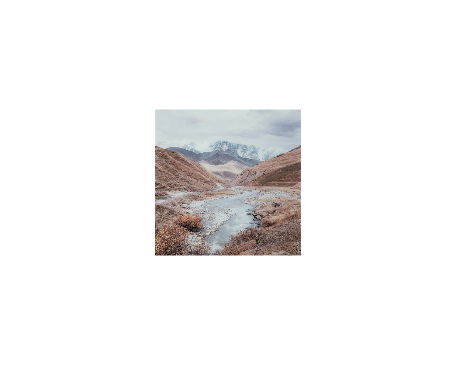 This landscape wall art brings the beauty of nature into your home. Printed on glass, it combines timeless artistry with innovative technology. The meandering stream and muted mountains evoke a serene ambiance, lending gallery-worthy charm.