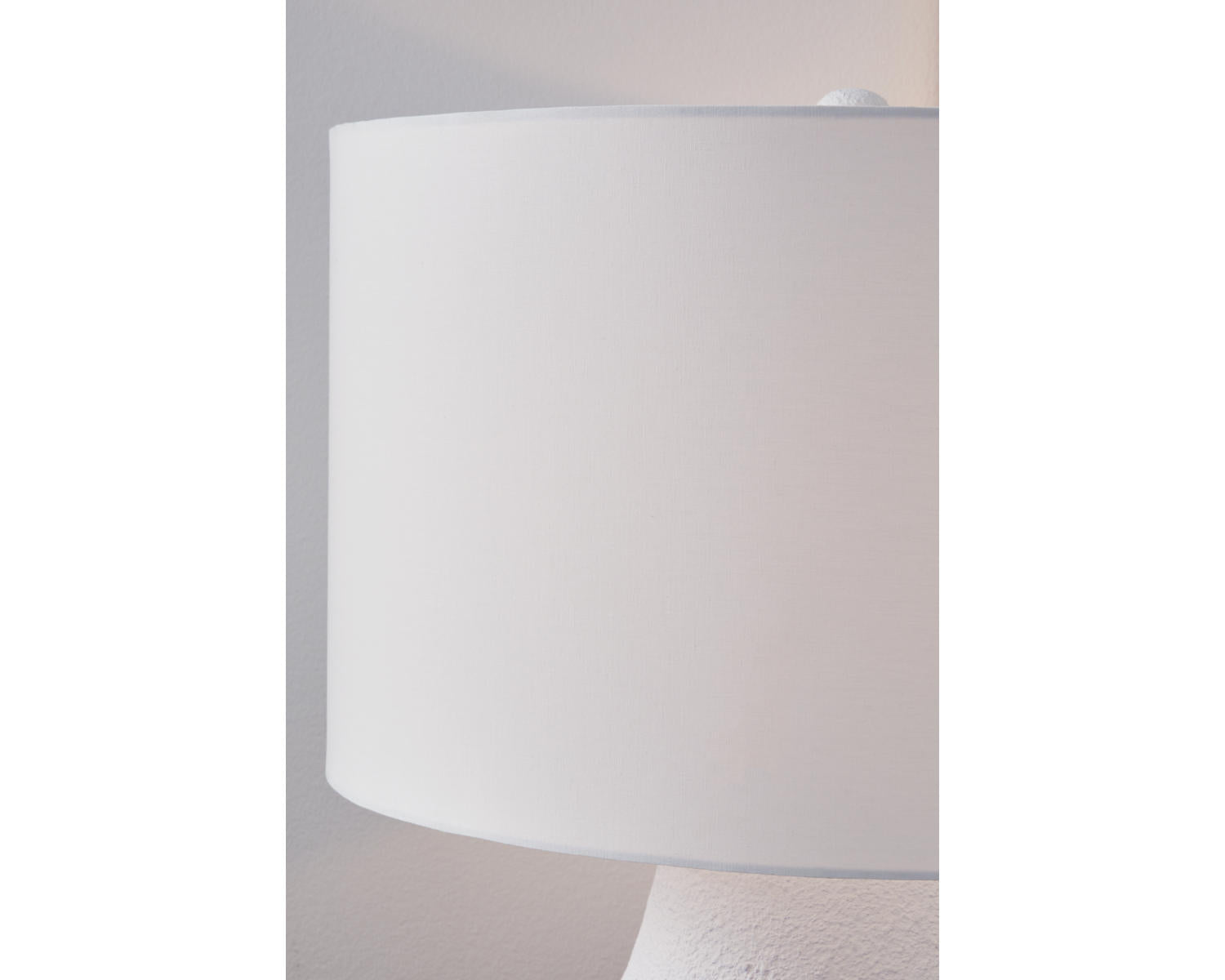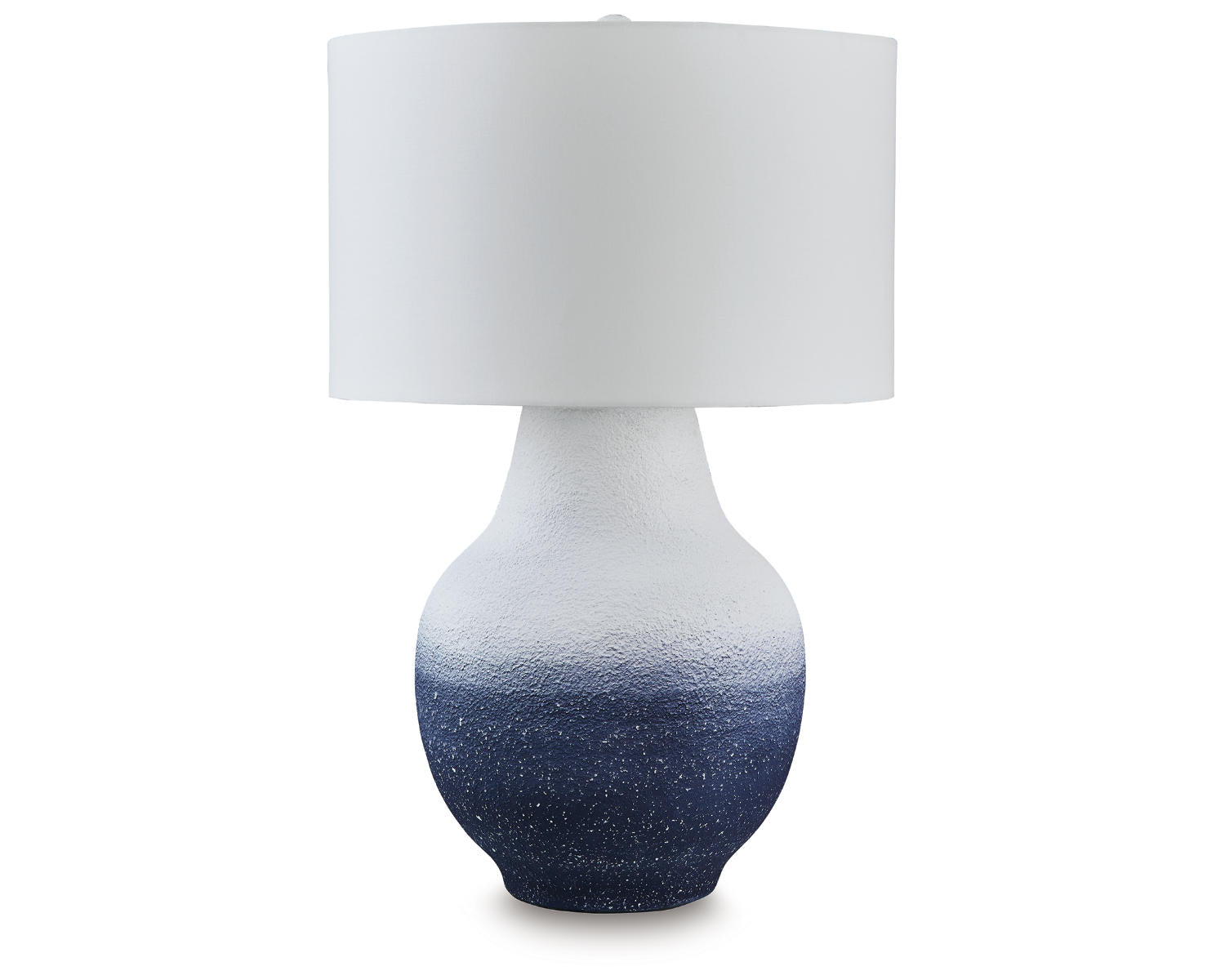 Recalling the texture of antique pottery, this table lamp incorporates a casual-meets-coastal feel into your decor. Its softly shaped silhouette is decorated in an ombre-style white and navy blue finish. Place it next to your sofa or bedside for a charming take on everyday illumination.
