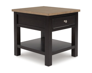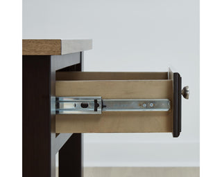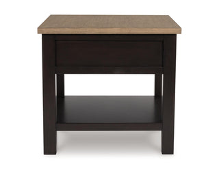 When you’re styling your living room, convenience is key. With this end table, casual flair meets can’t-miss function. Tired of tracking down lost remotes? A handy storage drawer keeps your entertainment essentials close. This fashionably functional piece pairs a dark chocolate brown with a light wood tone, complementing a variety of color palettes.