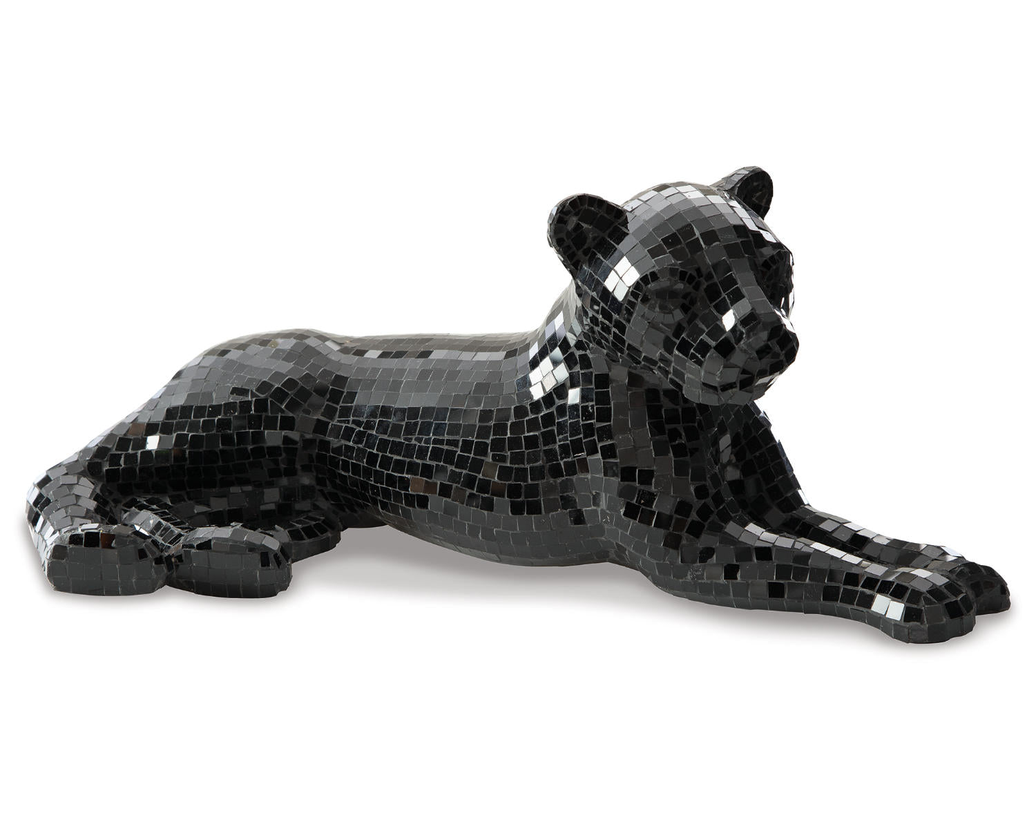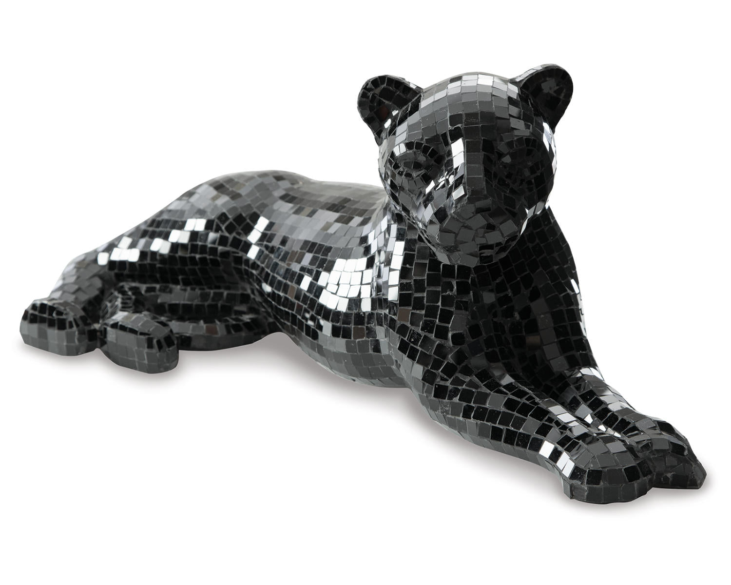 Decorate your home with this iconic mixed-media sculpture. Handcrafted with a mosaic glass and paper composite, this panther will add an exotic element to any space. Create a fierce look in your bedroom, or a luxurious allure in your living room, with this unique and thought-provoking piece.