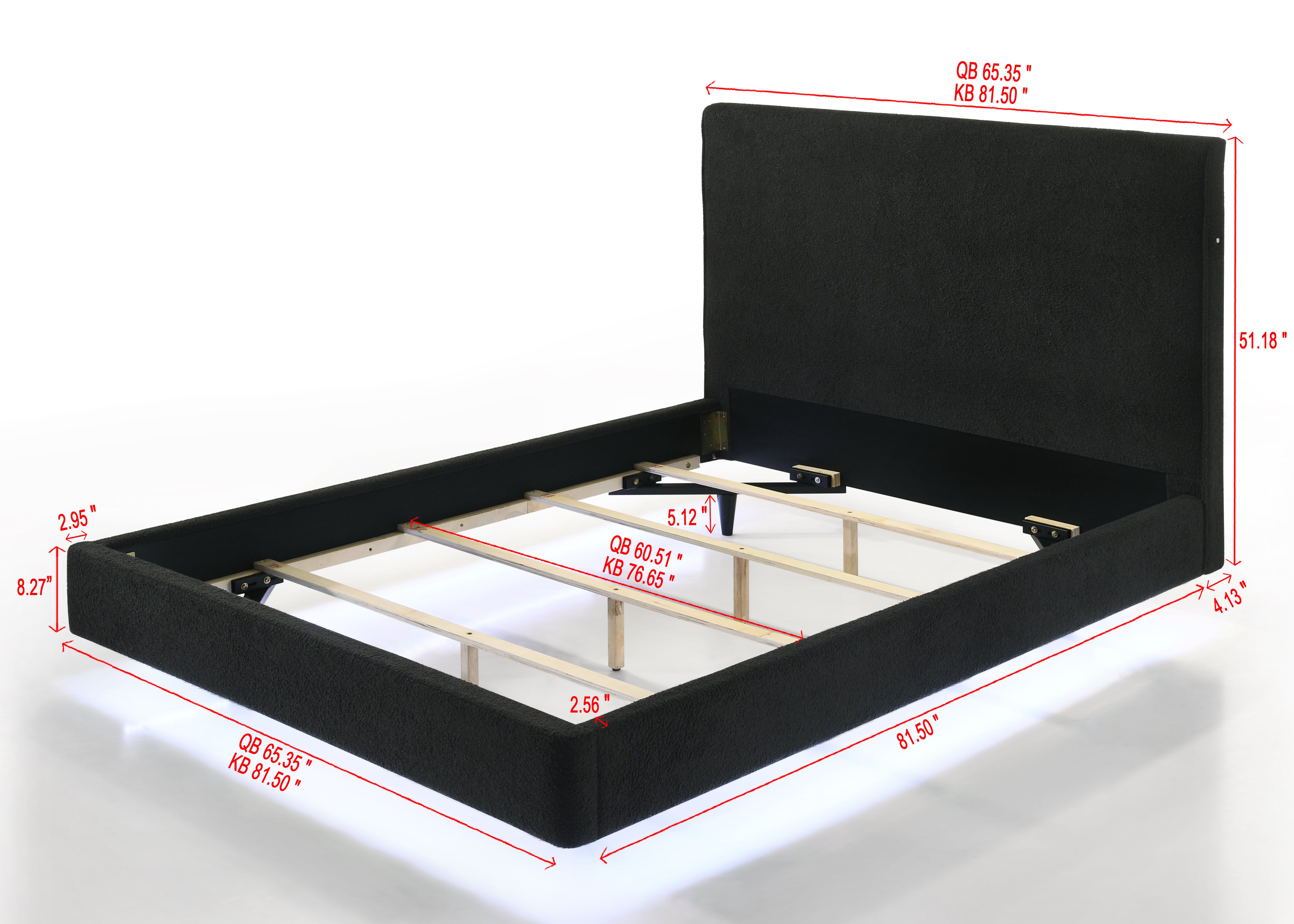 Discover the epitome of comfort and contemporary style with this floating illusion bed frame, accentuated by the underbed LED lighting. The rich black upholstery presents a tranquil and inviting aesthetic. Its high headboard offers an alluring charm and provides a cozy backrest for your late-night reads or breakfasts in bed.