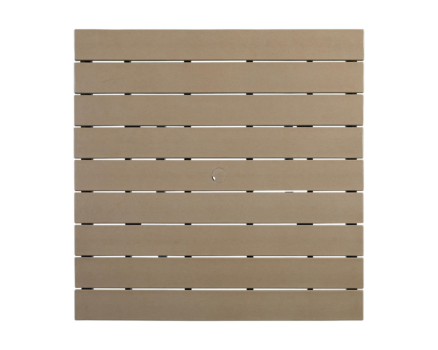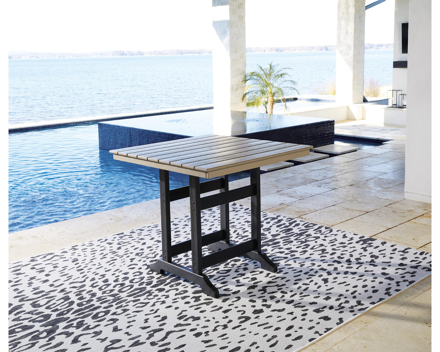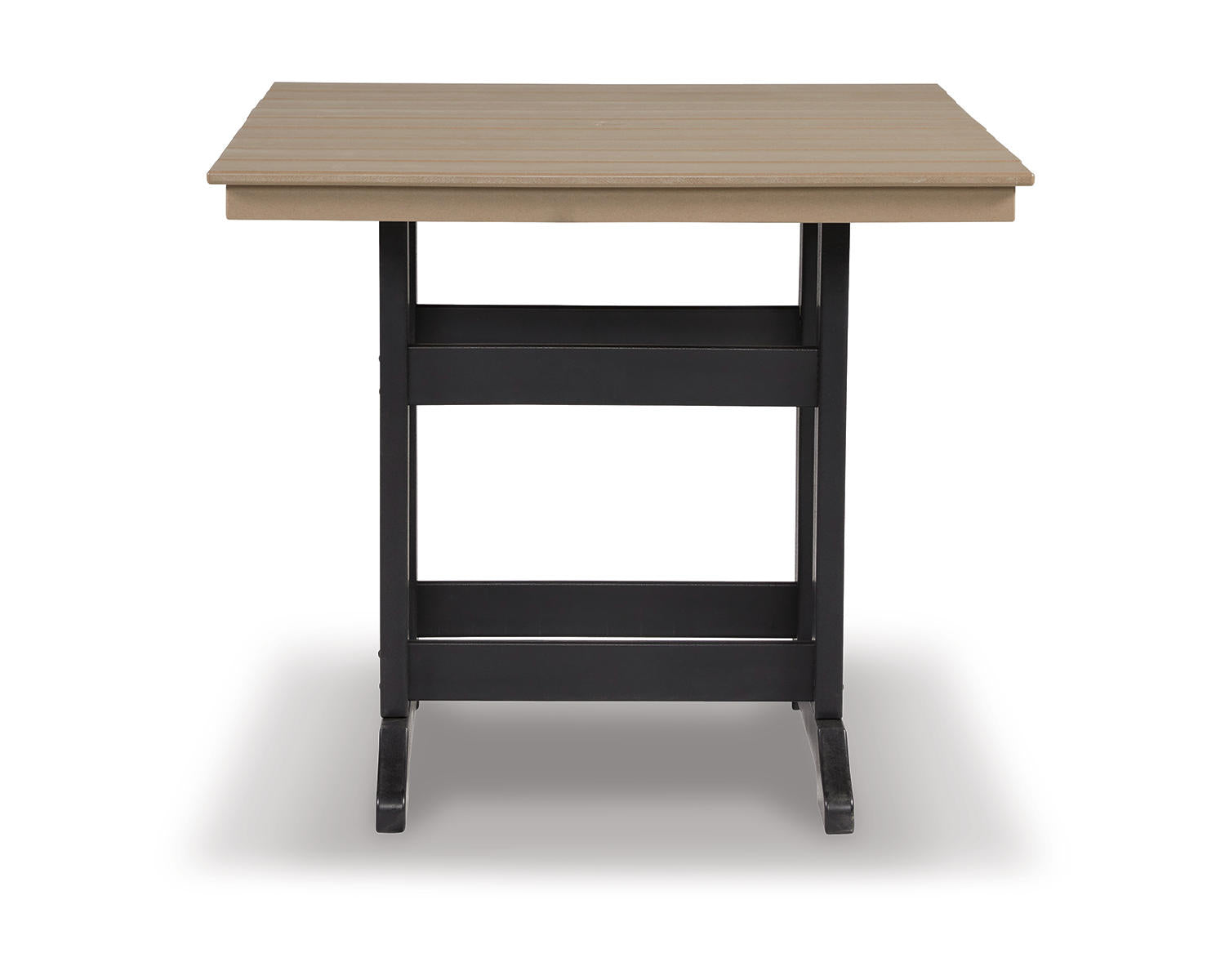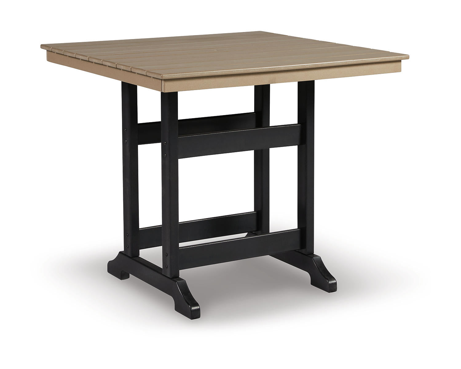 Raise the bar on outdoor living with this 42" square dining table. Crafted for style, comfort and MEGA-TUFF® durability, it caters with a standout look that pairs tones of driftwood and black for twice the interest. The table's counter height design elevates the aesthetic. An umbrella hole lets you throw some shade on your outdoor living space.