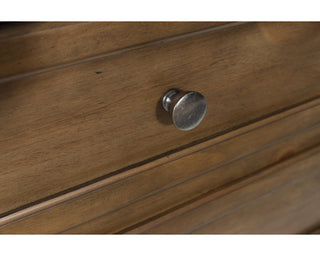 A relaxed take on casual traditional design, this chest of drawers strikes a comfy pose with a classic sensibility. Its timeless design and chestnut brown wood-tone create a welcoming retreat tailored to your laid-back lifestyle. Metal knobs in an aged pewter color subtly dress up drawers packed with storage possibilities.