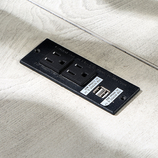 This corner desk provides plenty of space for any busy professional working from home. It features a lift-top design on one side, allowing you to work from any elevation you desire. A drawer on the other side allows for quick organizing of any paperwork, while the USB port and power outlets are there to ensure your machines don't run out of juice. Finished in trendy antique white, it's the kind of furniture that will ensure productivity stays high even at home.