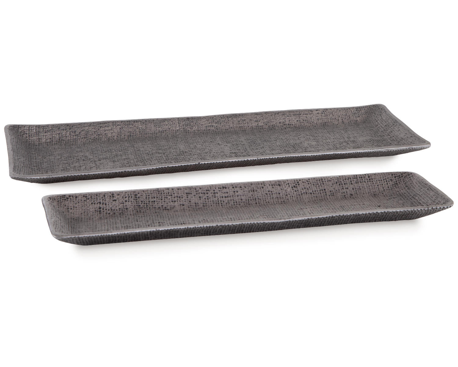 Set of 2 trays. Antique pewter finished cast aluminum with woven texture. Due to the finishing process of this product, some variations may occur