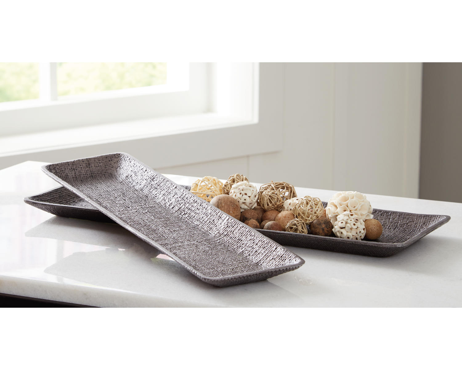 Top off tables and counters with this tray set. Searching for a casually cool catch-all option for your entryway? They keep keys and other essentials corralled. Also acting as a beautiful base for additional decorative pieces thanks to their textured surface, these trays are pioneers in fashionable function.