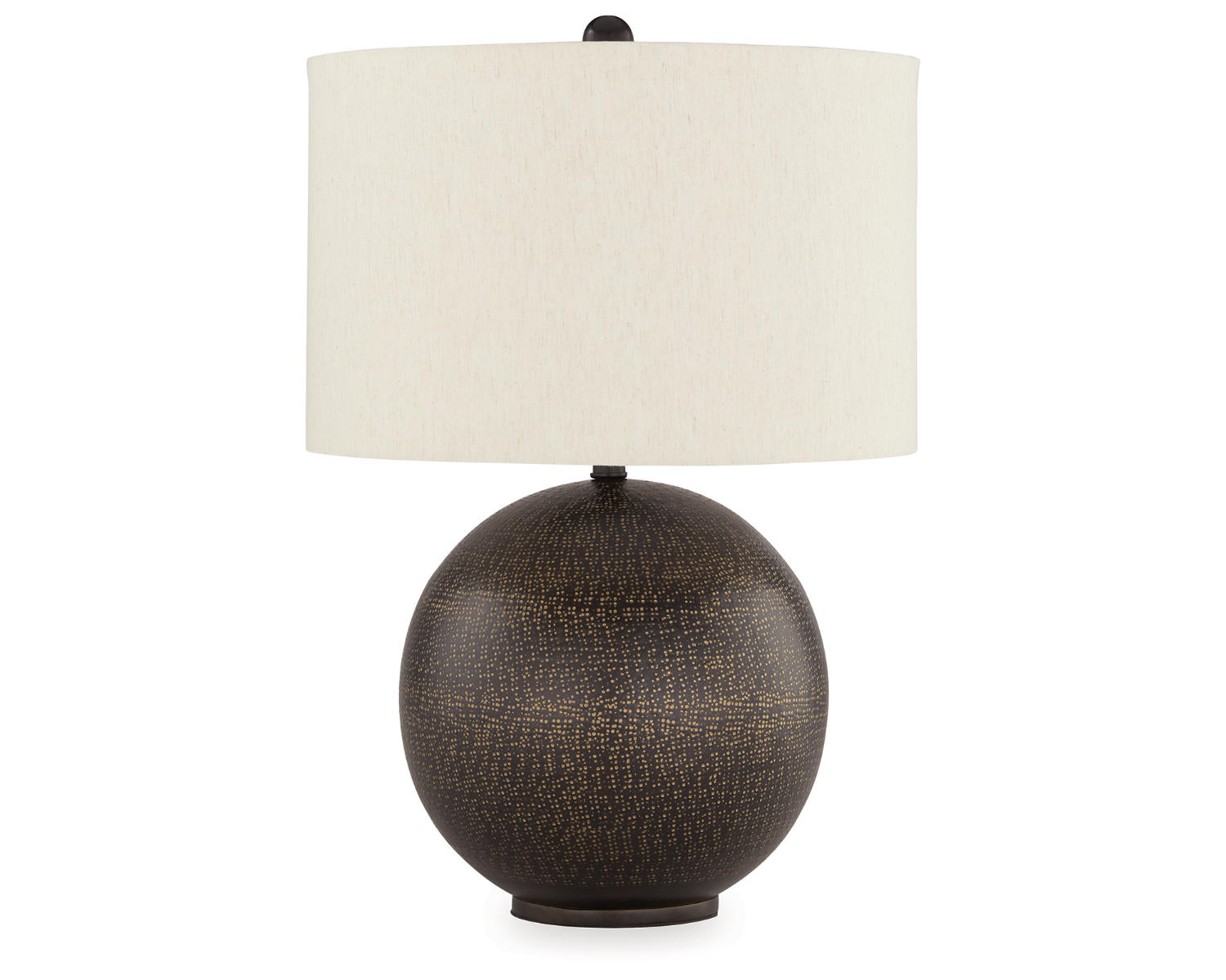 Turn on to a casually elegant sense of style with this table lamp. Its richly finished metal allures in a striking black with goldtone accents. Whether set on a side table or resting on your nightstand, it lightens the mood and brightens your home's overall ambiance and style.