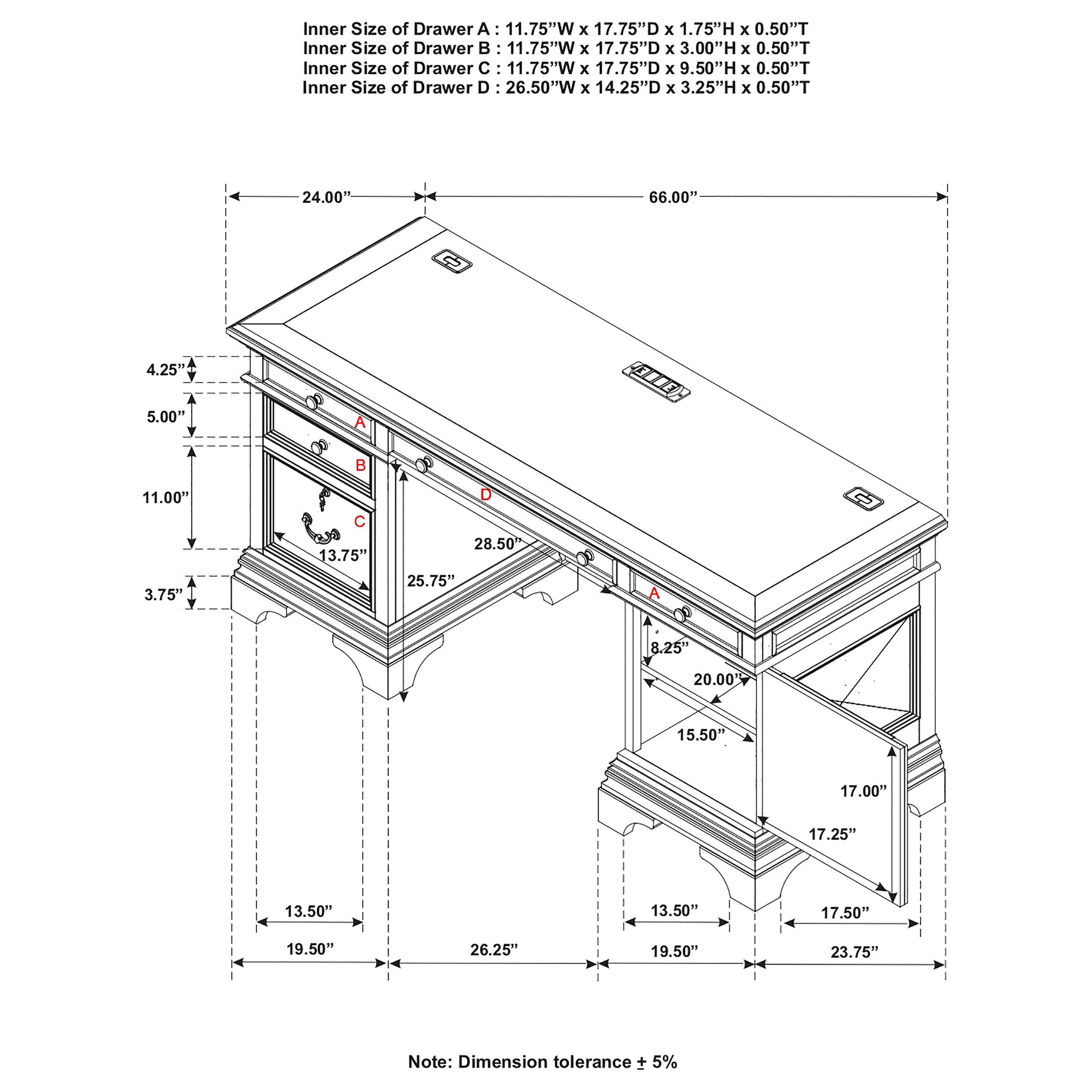 Hartshill 66-inch 5-drawer Credenza Office Desk Burnish Oak