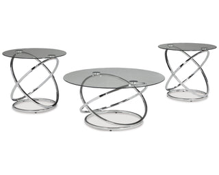 Made with tubular metal in a chrome color plated metal finish. Tables have joining rings forming elegant drum table that is topped with clear tempered glass with polished edges. 3-in-1 pack.