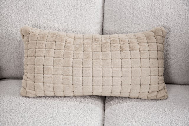 Iroquois Transitional Sectional in Cream/Tan features Fur Pillows, Pillows Included and Fuzzy Chenille.