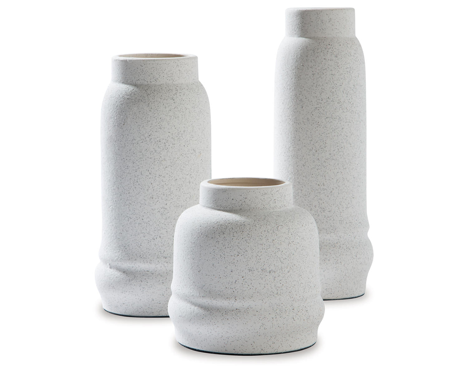This set of textured white ceramic vases helps create amazing floral arrangements in your home. Add flowers and greenery for a look your guests will want to imitate.