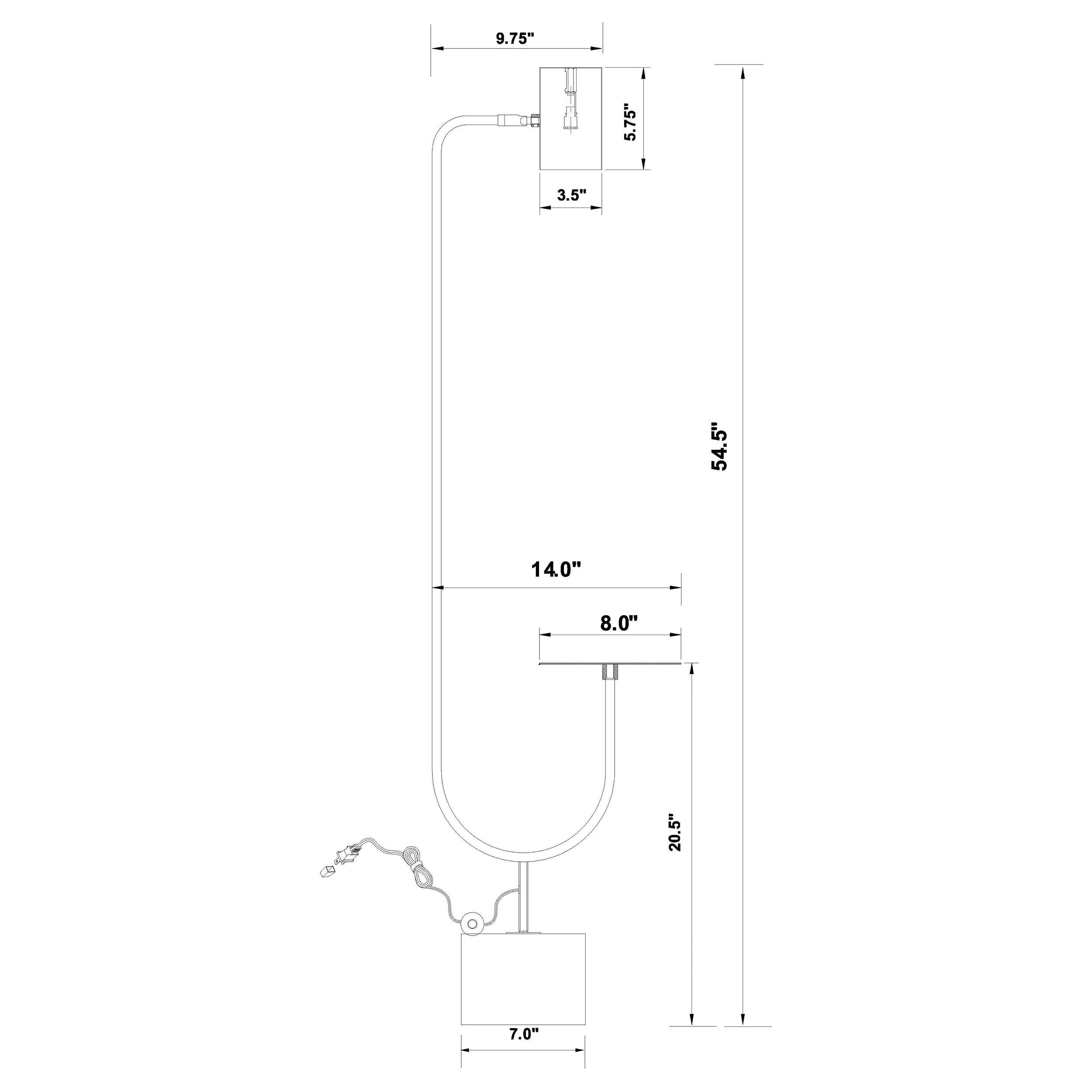 Illuminate your contemporary living room with this eye-catching, modern floor lamp. Designed in a cantilever-inspired style, this striking floor lamp presents a slim metal stand situated on a thick cement base. A slender arm in a gleaming antique brass finish that offers a round tray for resting a drink or book, sweeping upward into a tall spotlight style lamp with a cylindrical shaped shade. Use the light to accent decor on the tray or rotate it toward your living room seating area. The bold, grey cement base grounds this tall floor lamp visually and physically, offering a striking bright accent against rugs and floors while supporting this modern floor lamp.