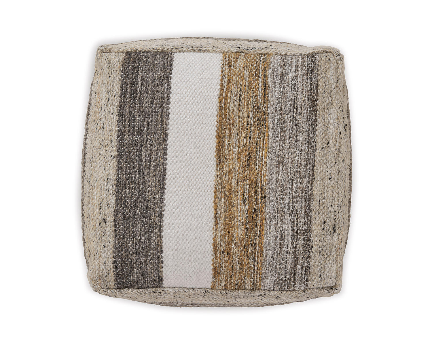 Weaving together stripes in grounded, earthy tones, this pouf is a natural beauty. It combines simple flair and function, with hues of white, honey and shades of gray and brown to keep things casual. Whether used as a footrest or a side table, this piece has an undeniably universal appeal.