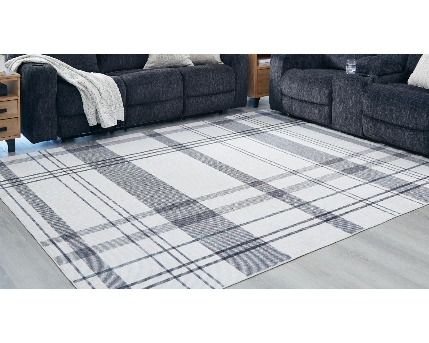 A fresh take on iconic plaid, this accent rug is both classic and contemporary. Its plaid design, with shades of gray crisscrossing against a solid cream background, has subtle variations that offer an artisanal feel. In addition, the machine woven material is durable and super soft underfoot. This rug is ready for real life—when spills or stains happen, just toss it in the washing machine.