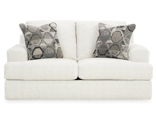 Craving casual refinement? This seating package has you covered. A decidedly contemporary frame cradles sizable cushions in an ultra-soft neutral hue, lightening the mood in your living room with simple style and everyday comfort. Solid and geometric accent pillows perfect the chic-meets-cozy vibe.