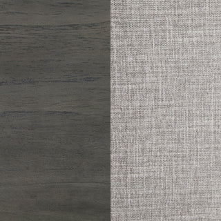 LED mood lighting plays up the modern ambiance of a contemporary wooden bed. Its upholstered headboard features vertical panels with light oyster gray upholstery, trimmed with lights to create an inviting glow in the evening. A soft gray wood finish is a perfect complement, trimming the headboard and gracing sleek rails and a low footboard. Warm brass-toned hardware accents bring stylish flair to each corner of the footboard, and outline the headboard to create a sophisticated finishing touch. Rails and center support legs complete the bed, adding strength and durability.