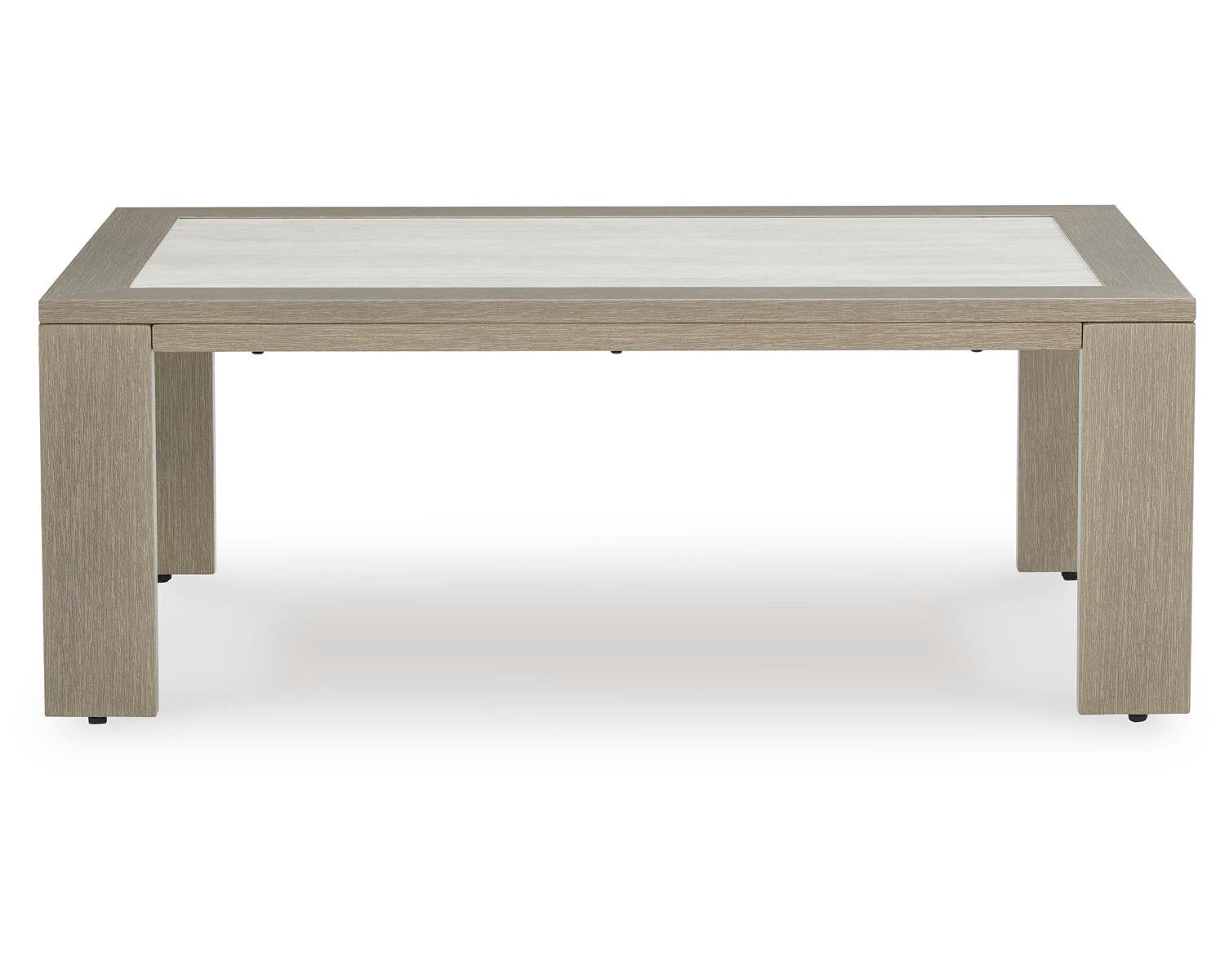 This outdoor coffee table is just what you need to get your outdoor party started. Though it looks remarkably like wood, its durable frame is perfectly suited for alfresco living. A striking tabletop with the look of natural stone serves up plenty of room for snacks and drinks.