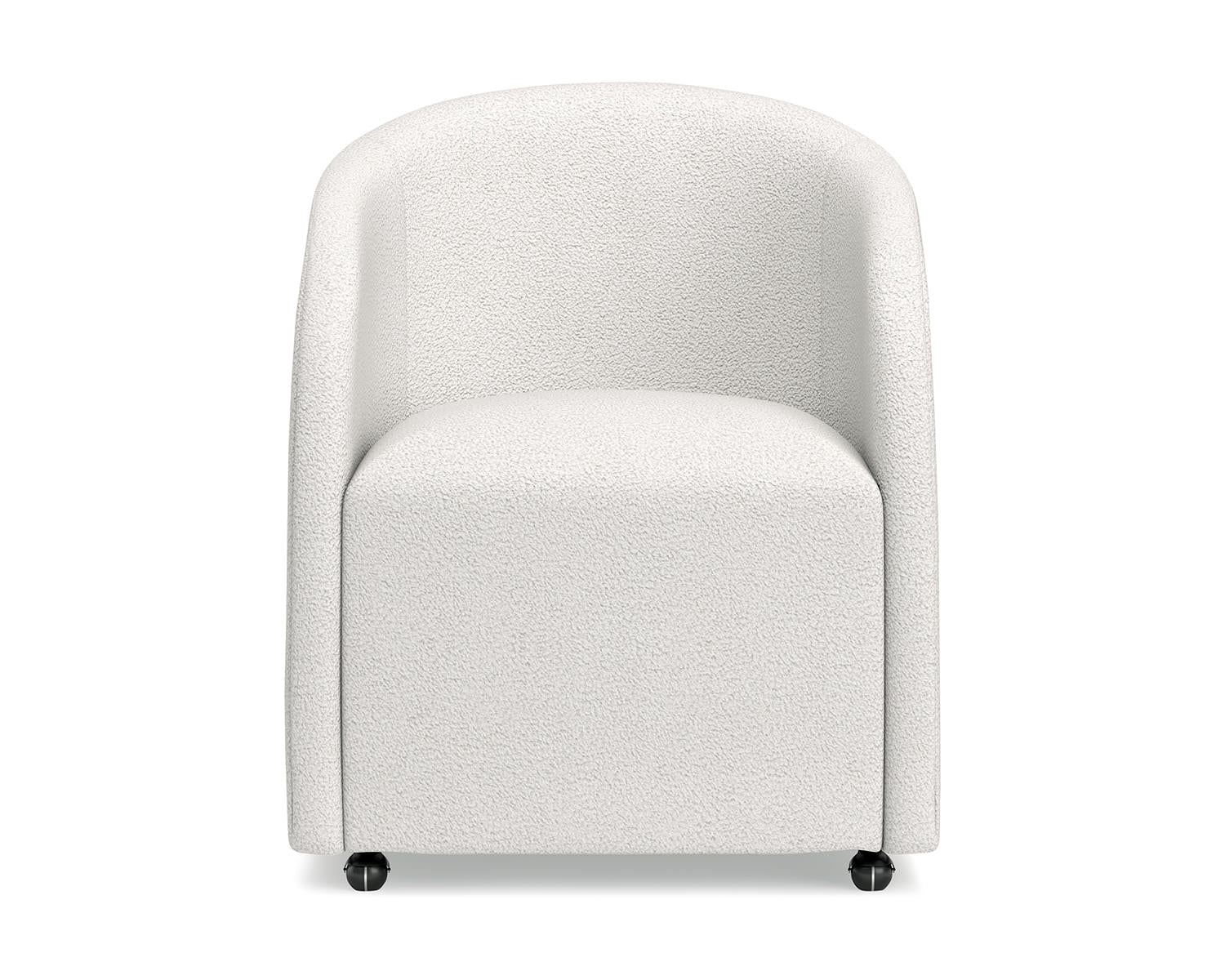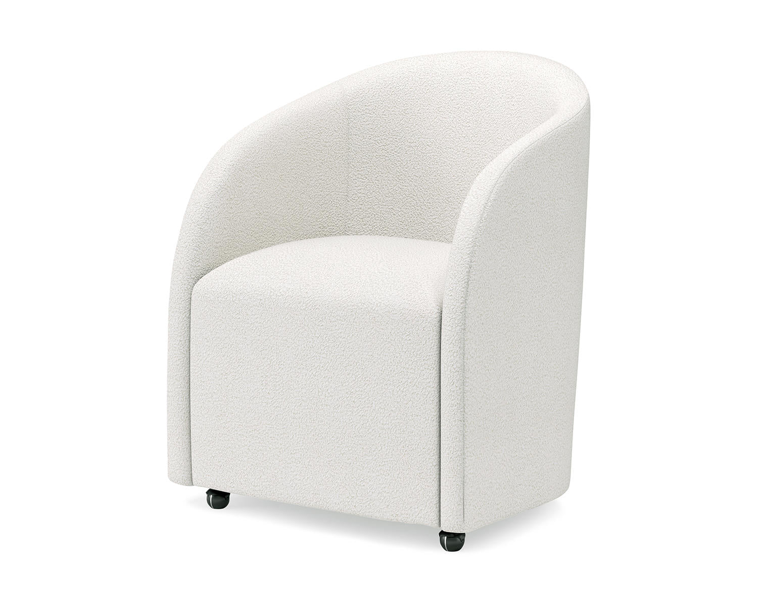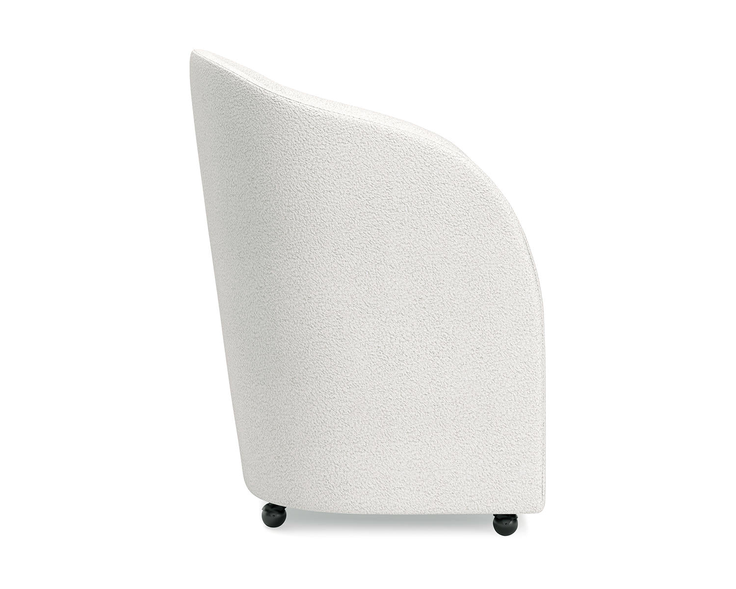 This fully upholstered desk chair makes a lasting impression in a simply stunning way. Its magnificent curves are enhanced with a neutral boucle upholstery that’s so pleasing to the eye. This bucket chair is the piece you’ve been looking for to elevate your contemporary home office. Plus, it’s set on casters so it’s easy to move around.