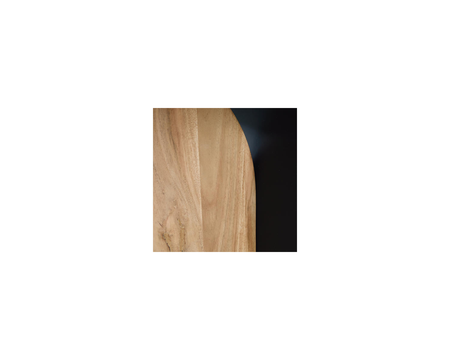 Accent table. Constructed of metal in black finish and solid wood in natural finish.