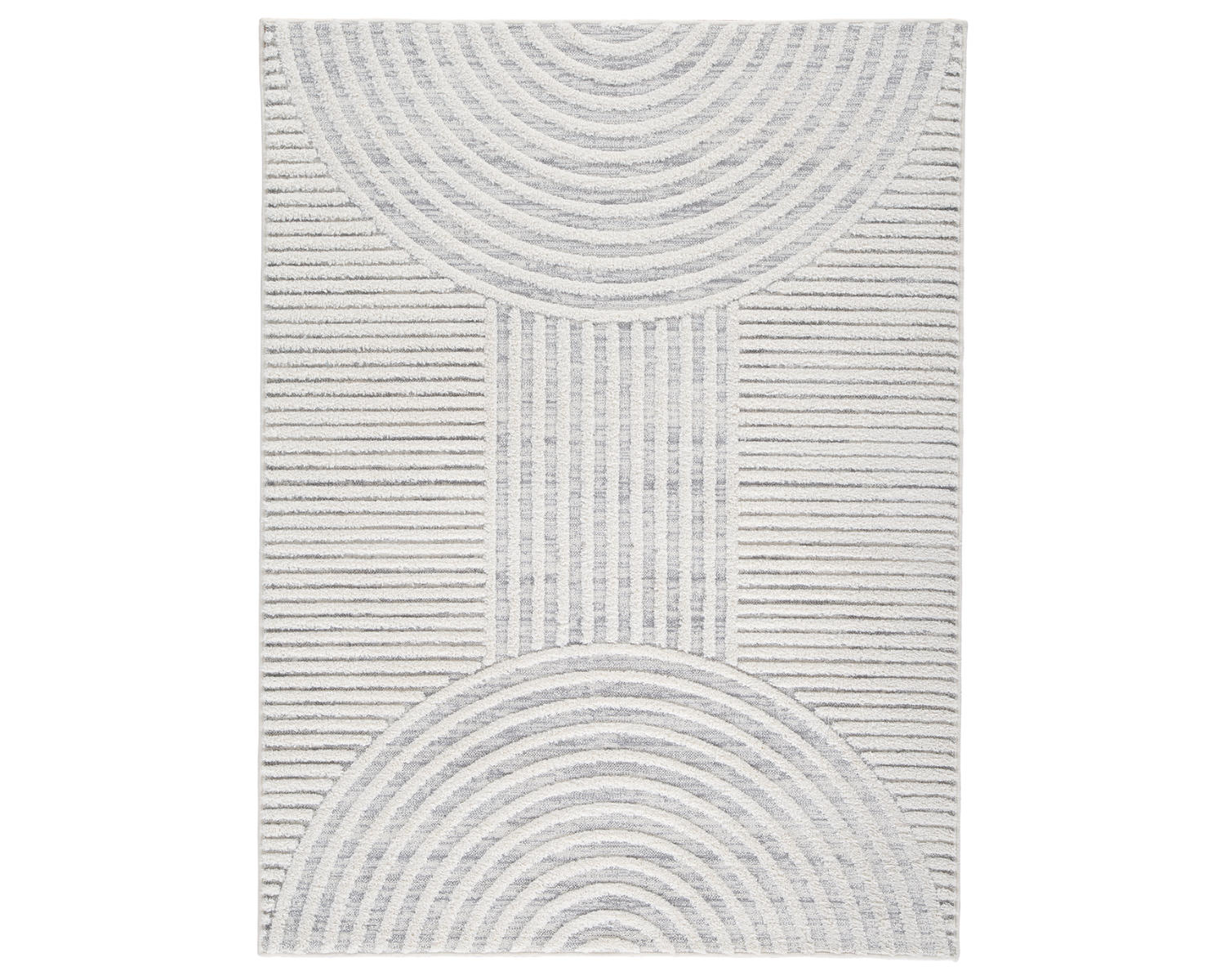 A great area rug should be the intersection of style and comfort. This rug accomplishes just that. Its beautiful geometric design combines lines and half circles to create varied high-low textures. Adding contemporary flair to any room, this rug perfectly complements a variety of spaces.