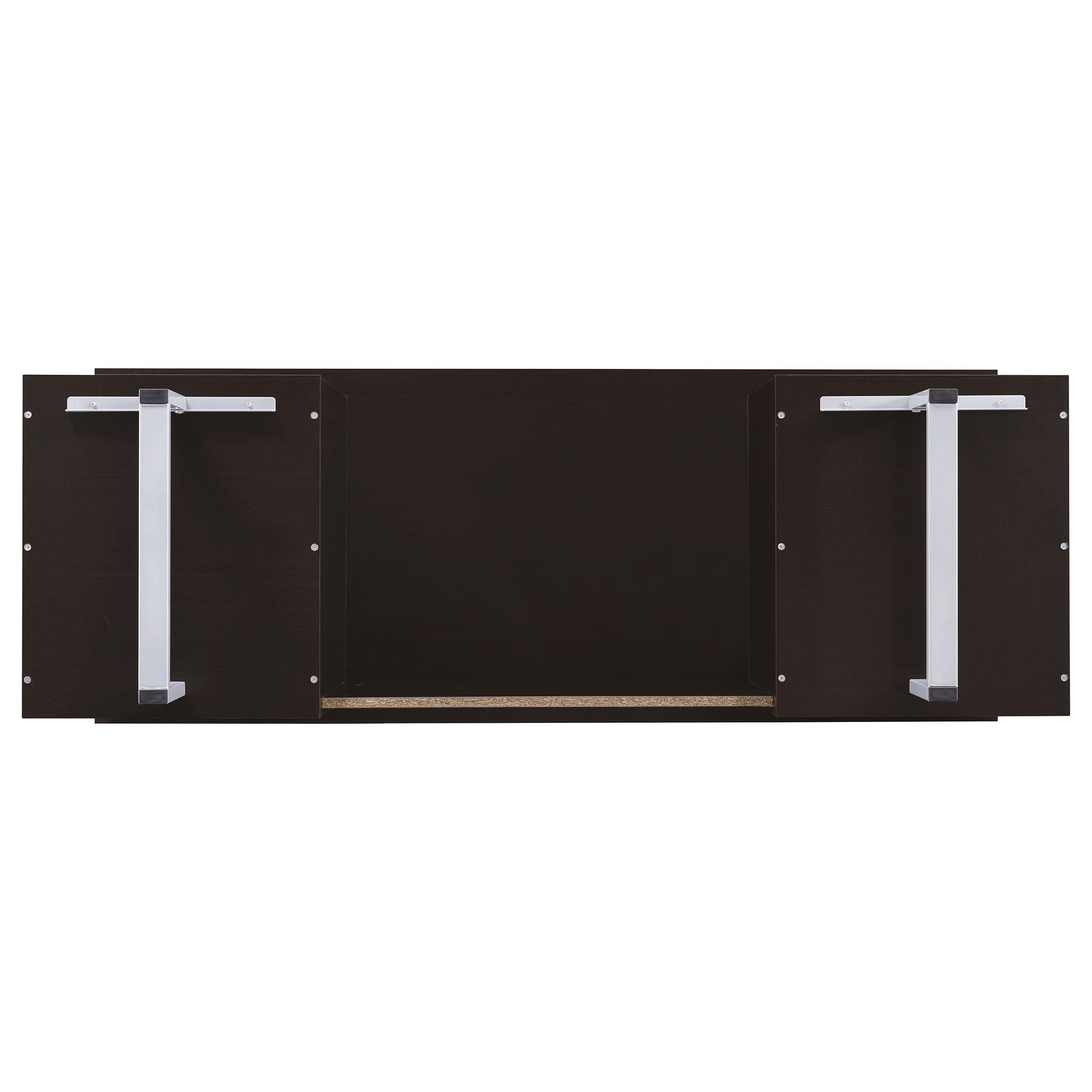 Enjoy an intriguing architectural design in this office desk. A floating top creates a visually enticing effect and a completely different look. Finished in cappuccino, it flatters surrounding decor and delivers a dramatic touch. Store essentials in a cabinet and drawer, and use a file cabinet to organize papers. Contrasting silver hardware and steel legs plays up the contemporary flavor of this stylish desk.