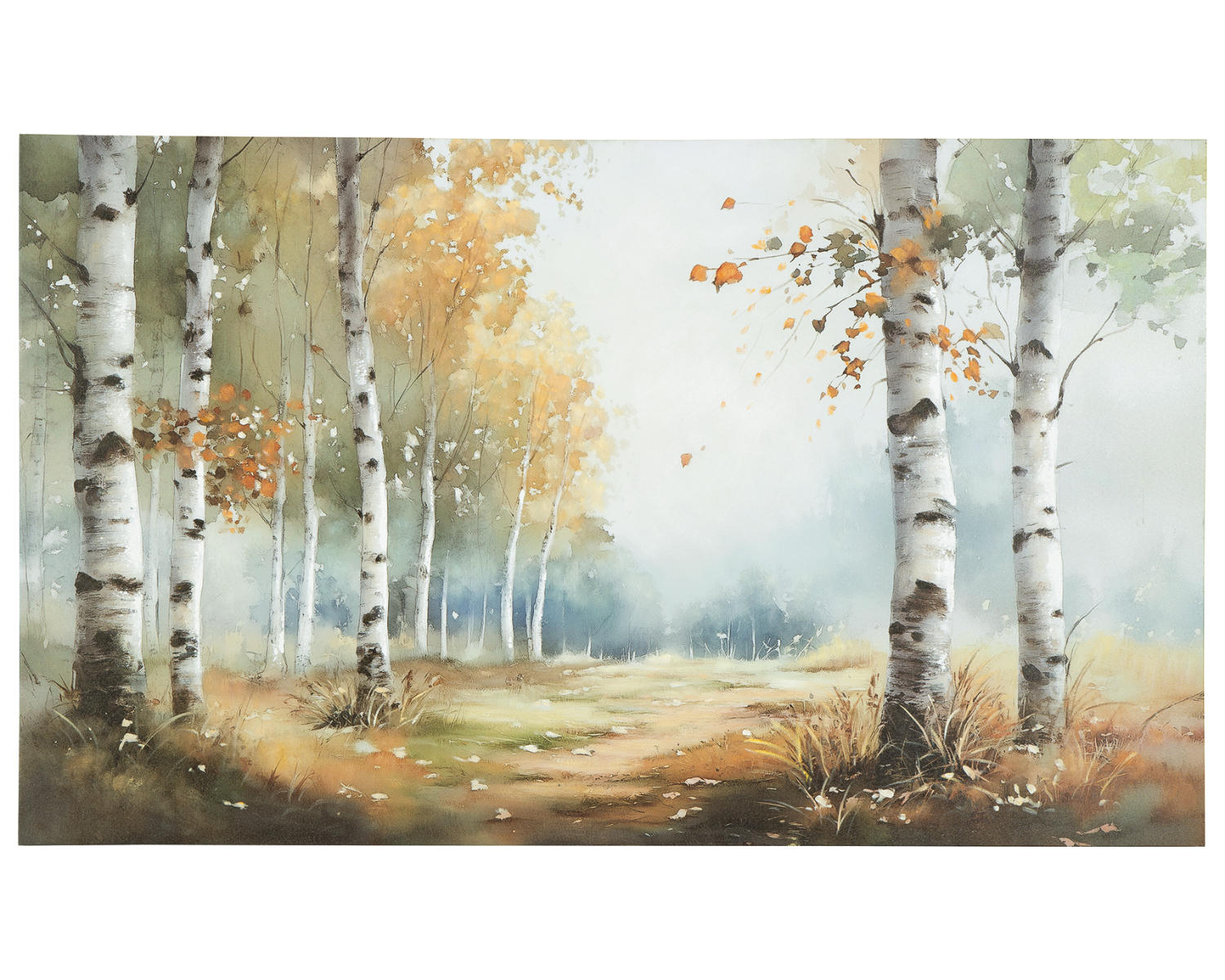 Explore a winding path through the woods with this wall art. A lovely interpretation of natural landscapes, its muted hues evoke the feeling of a peaceful stroll. The picturesque piece is a charming addition to a living room or office.