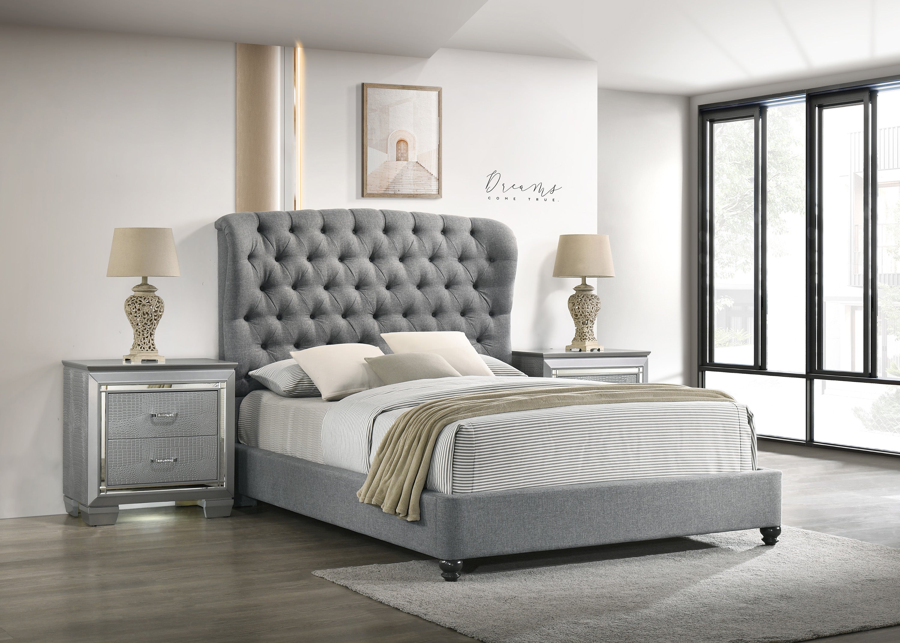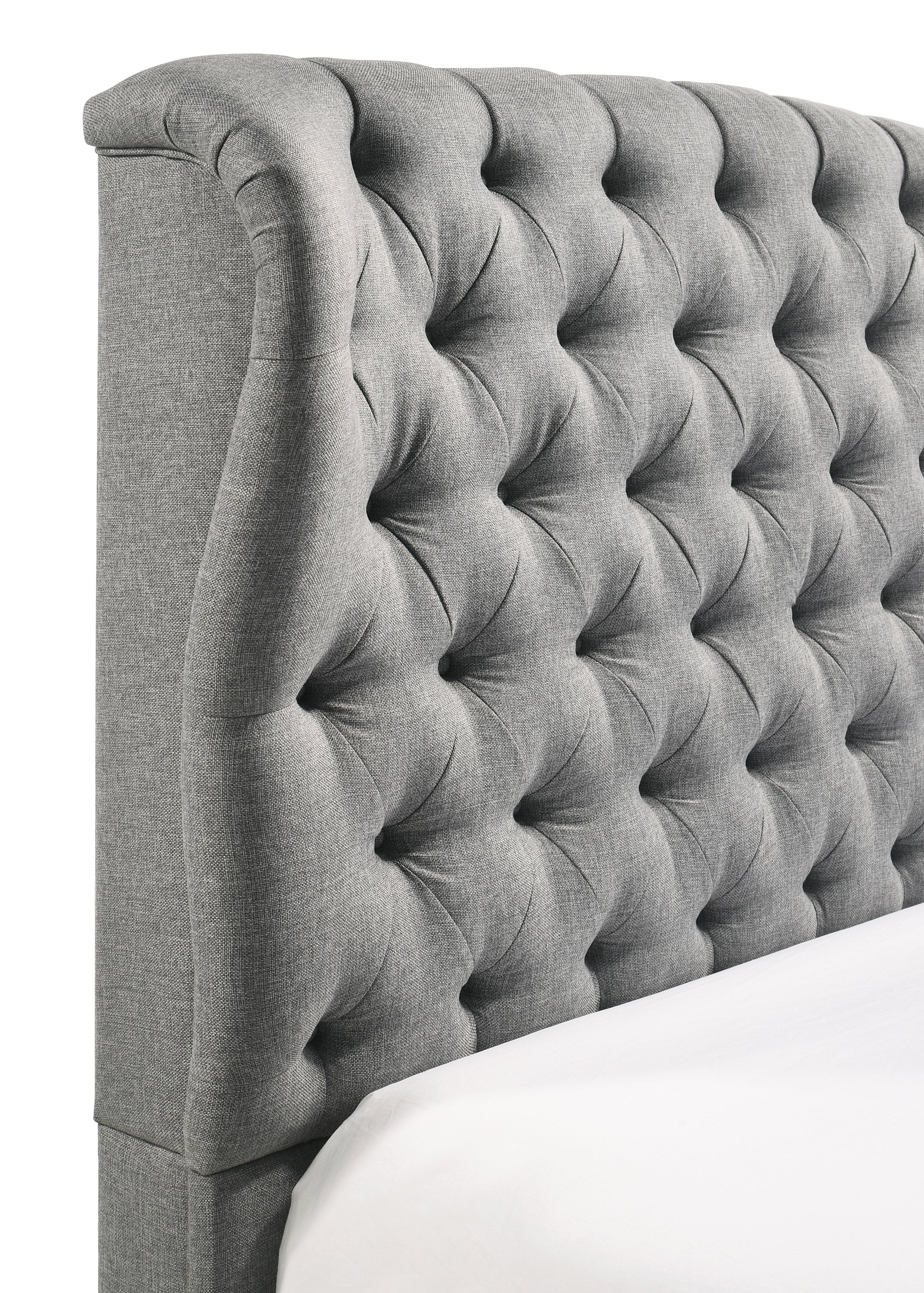Introducing an embodiment of sophistication and comfort, this bed frame is tailored to those who aspire to infuse their bedroom with a touch of elegance. The graceful contours of its wingback headboard create an inviting retreat, while the neutral-hued upholstery offers a versatile backdrop for an array of bedding styles.
