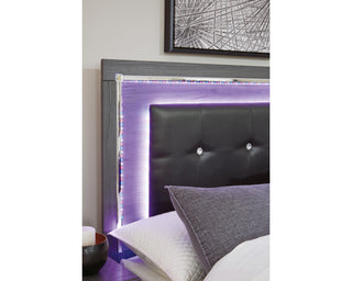 Modern gray finish with replicated wood grain. Cases and bed are accented with faceted chrome details. Large scaled chrome handle with faceted details. Headboards are accented with LED lighting and include a remote for color and brightness options. Included remote holder discretely keeps light remote accessible. Headboards are accented with faux crystal tufted black upholstery. Side roller glides for smooth operating drawers. Drawer interiors are lined with a faux linen laminate for a clean finished look. Both king, queen and full panel beds have a panel footboard (84,54,56) and storage footboard option (84S,54S,56S). Full (87), Queen (57) and King (58) headboards can attach to a bolt-on metal bed B100-21, B100-31 or B100-66 respectively. Queen (57) upholstered panel headboard is capable of attaching a full sized metal bolt on bed frame. Both USB and wireless charging options are provided with the night stand. Queen (54,54S) and king (56,56S) can use -95 platform rails and require B100-13 (queen) or B100-14 (king) roll slats eliminating the need for a box spring. Safety is a top priority, clothing storage units are designed to meet the most current standard for stability, ASTM F 2057 (ASTM International). Drawers extend out to accommodate maximum access to drawer interior while maintaining safety.
