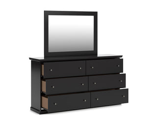 Solid black finish. Casual cottage design accented with pewter color knobs for a more urban look. Scalloped top and base mouldings add dimensional flare to case perimeters. Side roller glides for smooth operating drawers. Mirror (35) has the versatility to be mounted on dresser or wall horizontally or vertically. Safety is a top priority, clothing storage units are designed to meet the most current standard for stability, ASTM F 2057 (ASTM International). Drawers extend out to accommodate maximum access to drawer interior while maintaining safety.